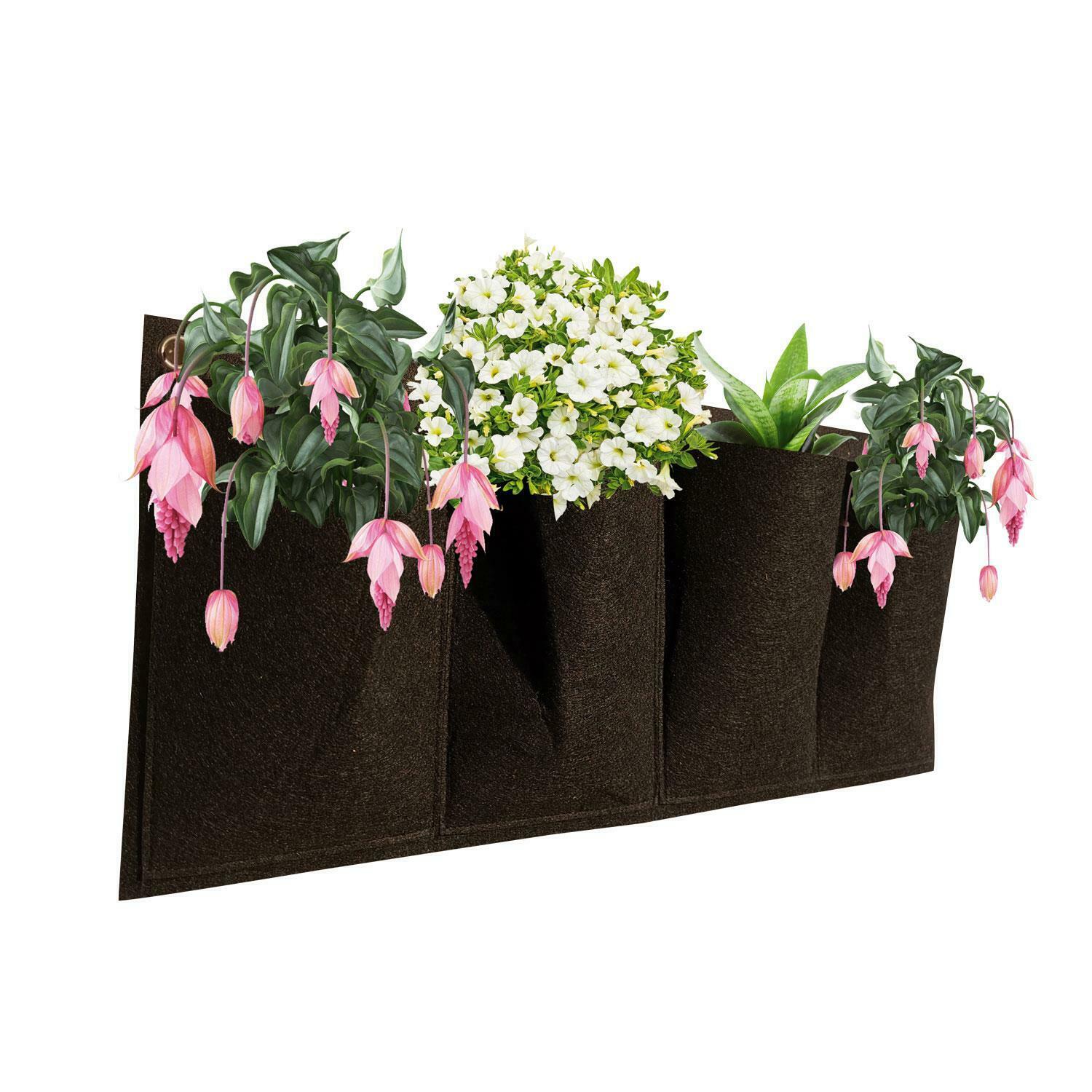 4 Pockets Hanging Vertical Wall Planter Planting Grow Bags Garden Outdoor Indoor