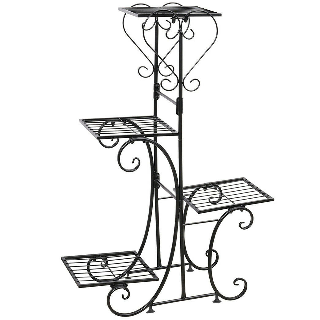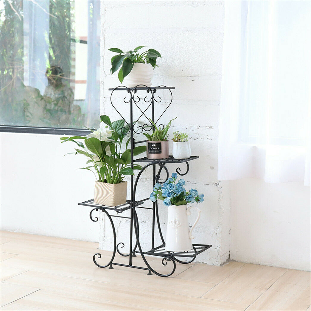 4 Potted Wrought Iron Plant Stand Metal Flower Rack Holder Home Office Decoratio