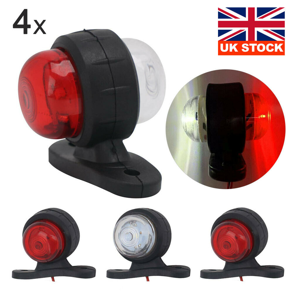 4 Red White Corner Side Marker LED Lights Outline Lamp Truck Trailer Van Bus 12V