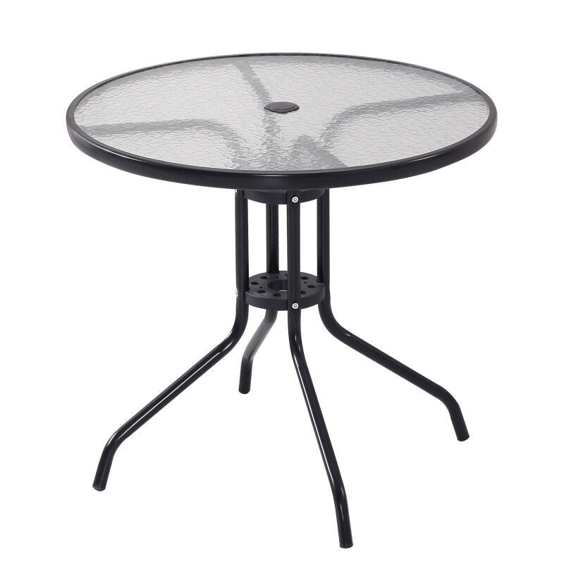 4 Seater Glass Table Garden Outdoor Indoor Bistro Cafe Unit With Parasol Hole UK