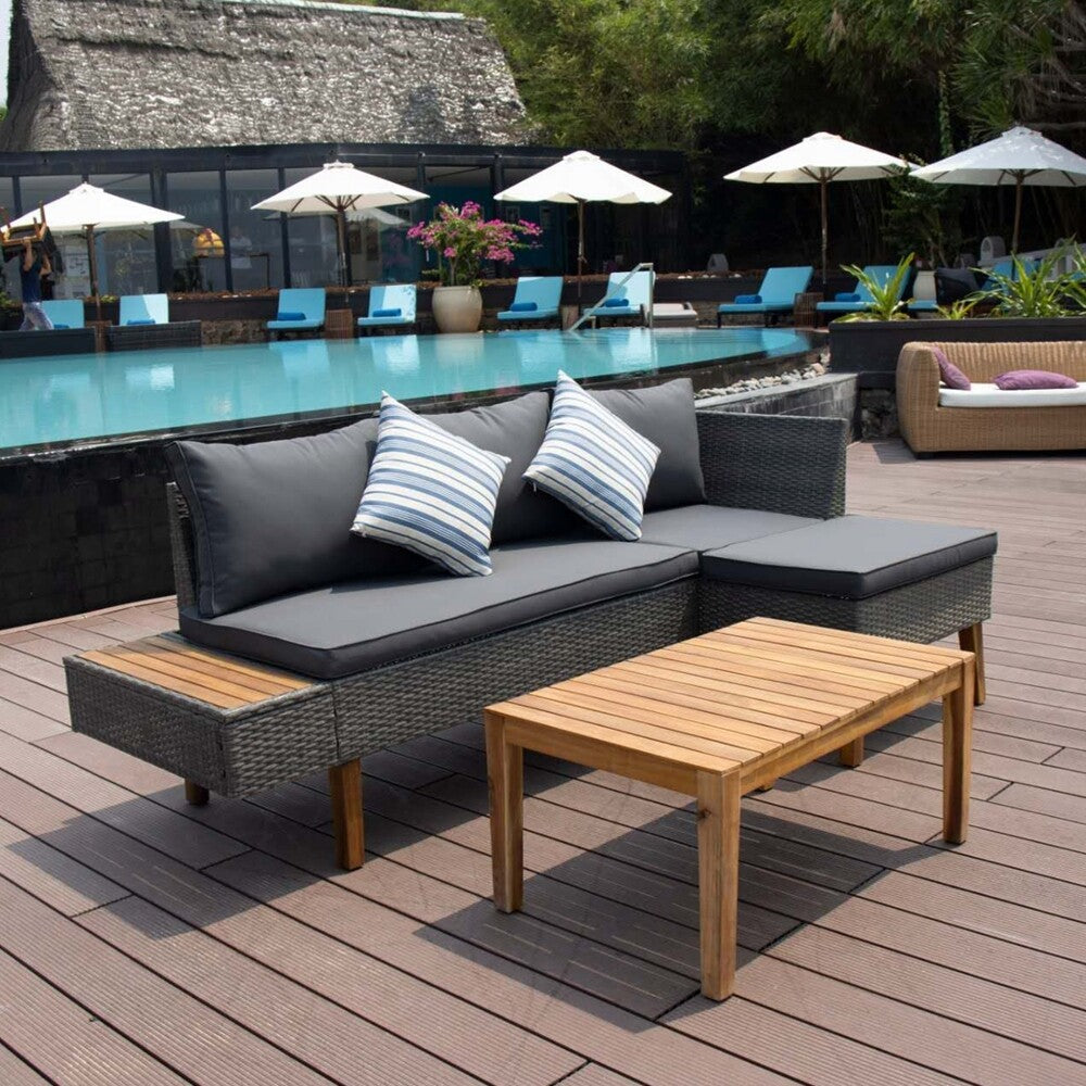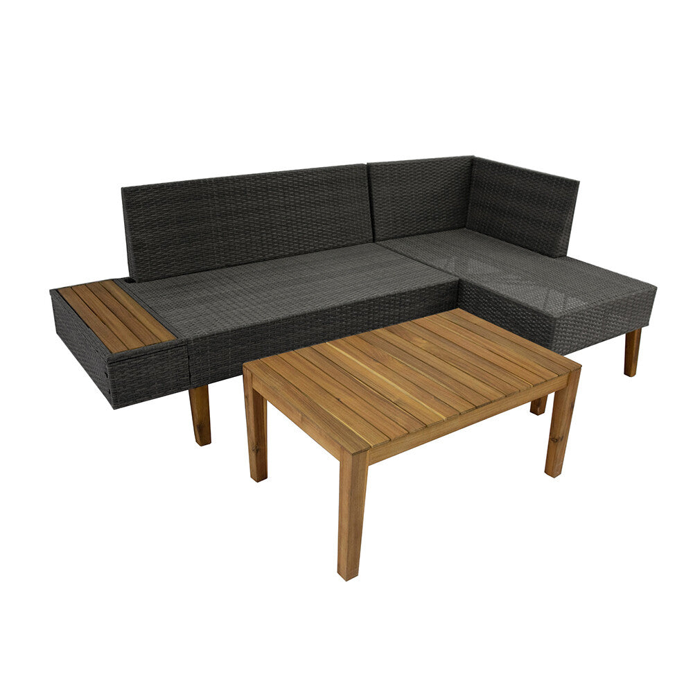 4 Seater Rattan Furniture Set Corner Sofa Acacia Wood Table Garden Patio Outdoor
