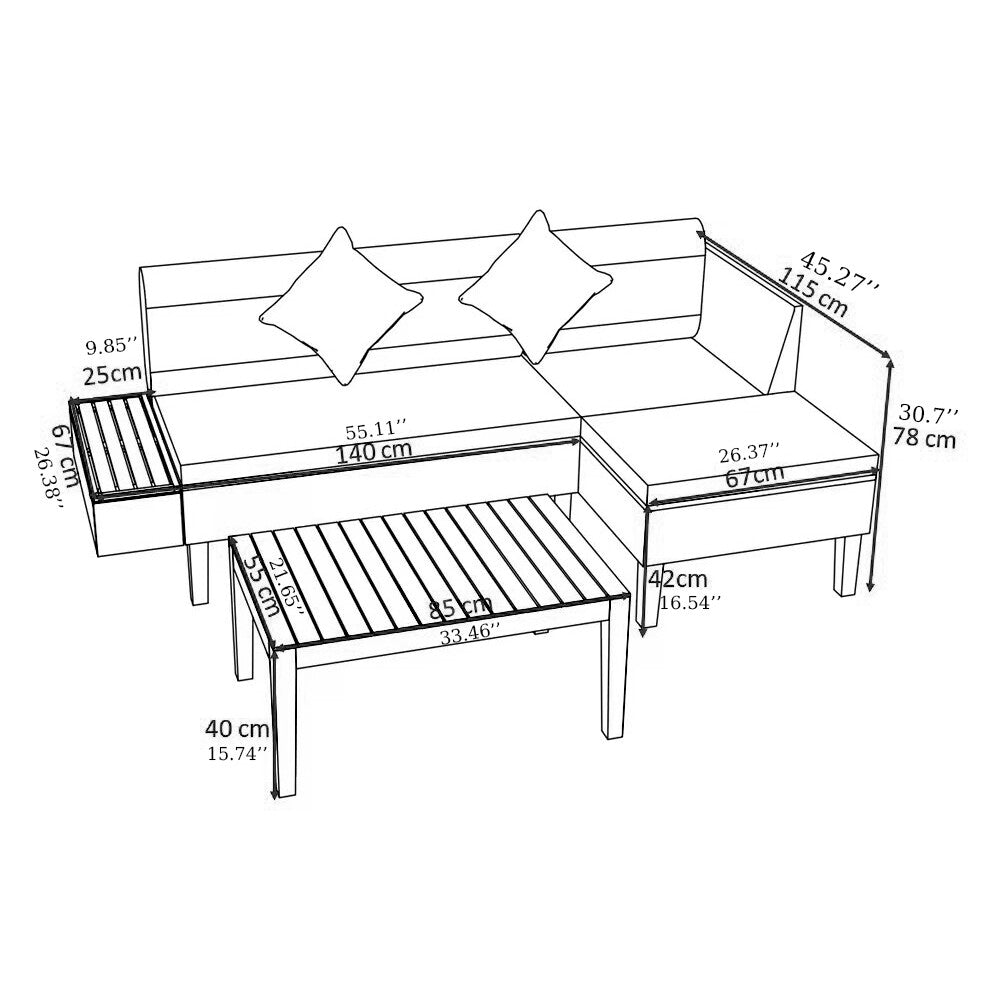 Set Includes Back Cushion, Table, Seat Cushion/Pad, Sofa