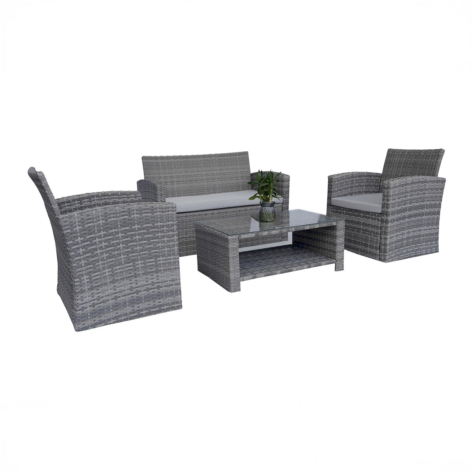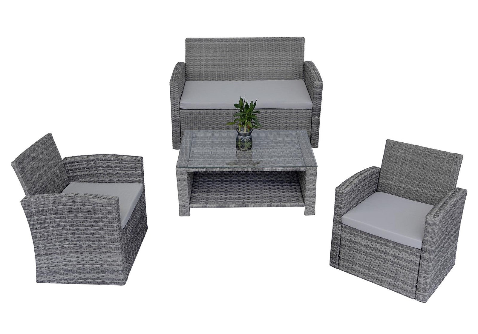 4 Seater Sofa Set Rattan Garden Furniture Grey Outdoor Patio Lounge Coffee Table