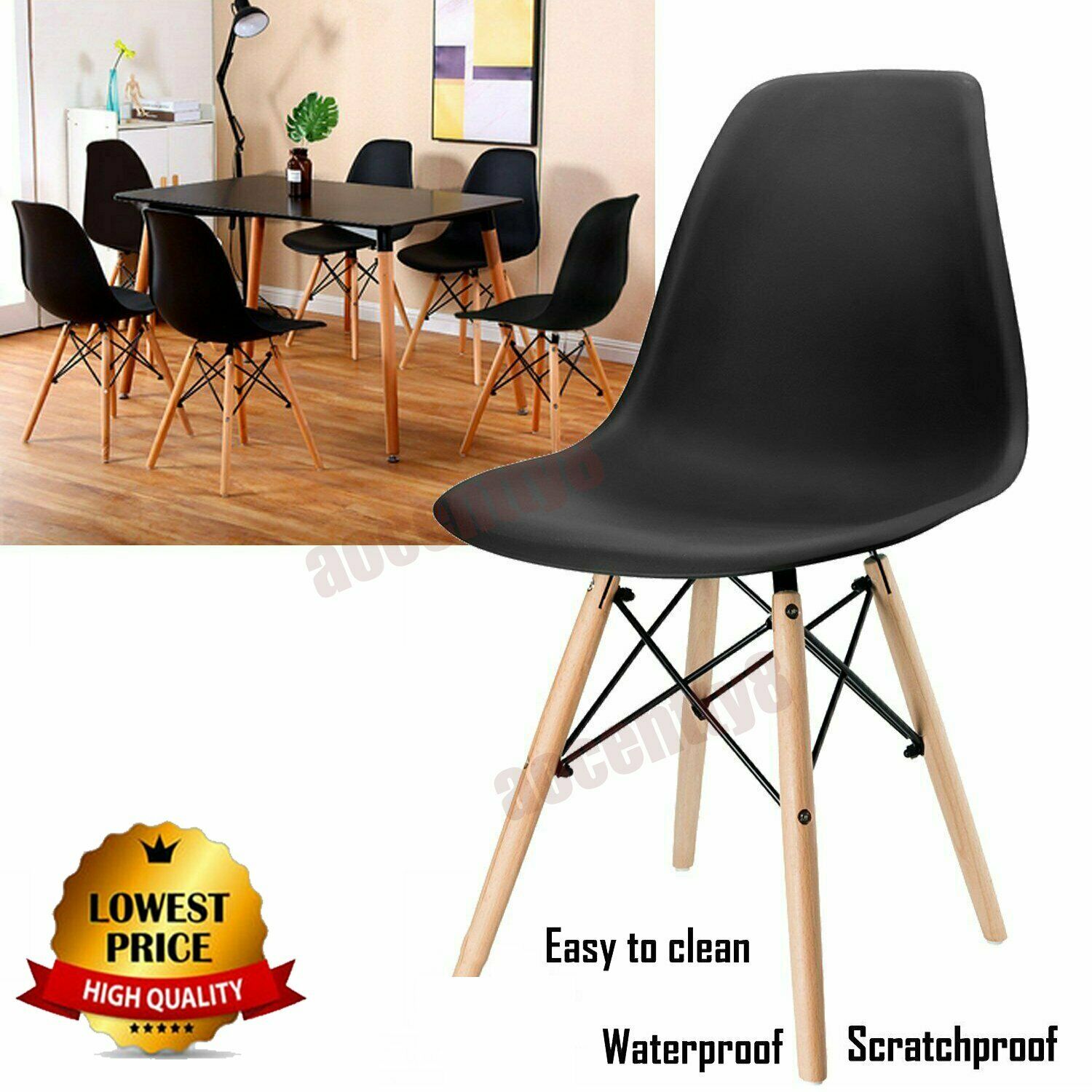 4 Sets of Retro Wood Style Eiffel Dining Chairs Office Computer Desk Seat NEW