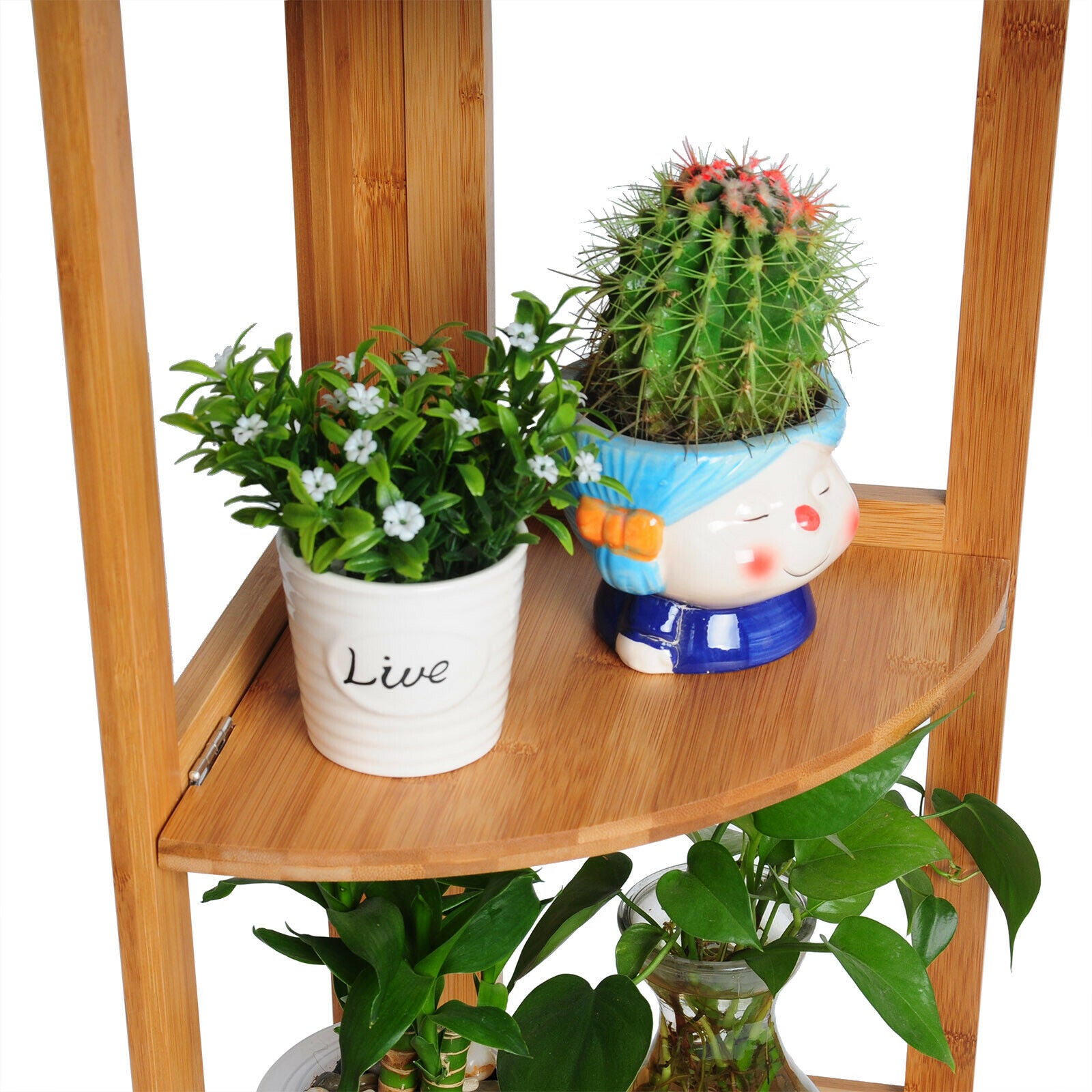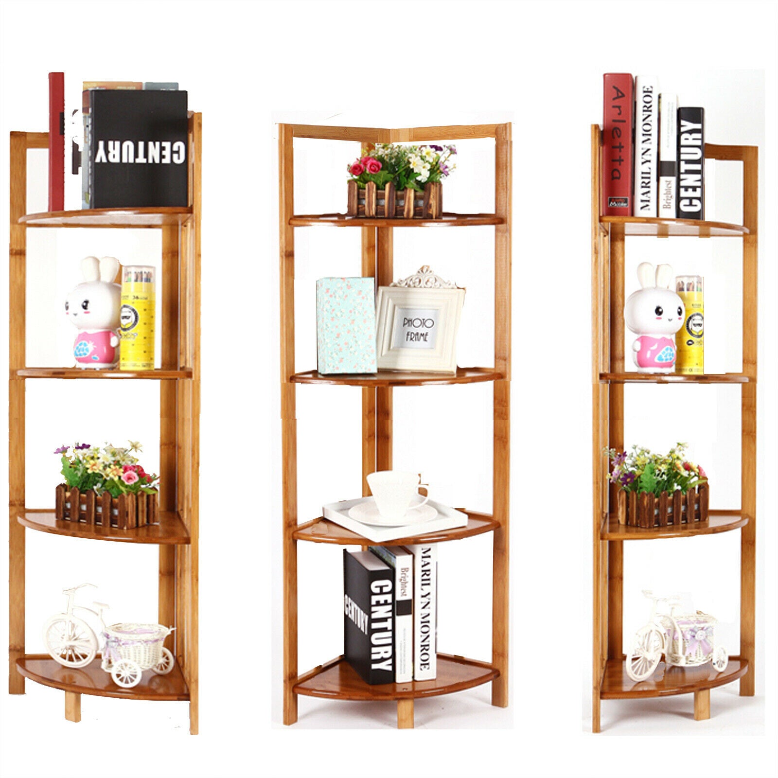 4 Tier Bamboo Corner Stand Shelf Flower Home Garden Plant Display Storge Racks