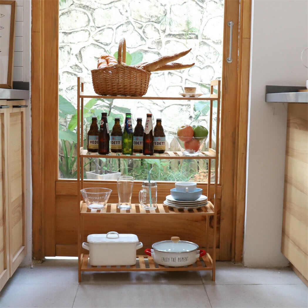 4 Tier Bamboo Kitchen Bathroom Laundry Shelf BookShelf Storage Rack Shop Display