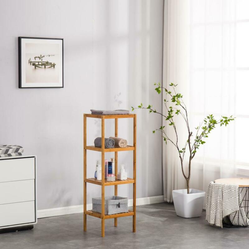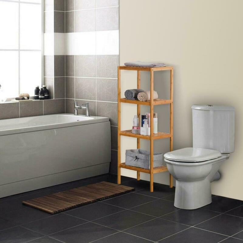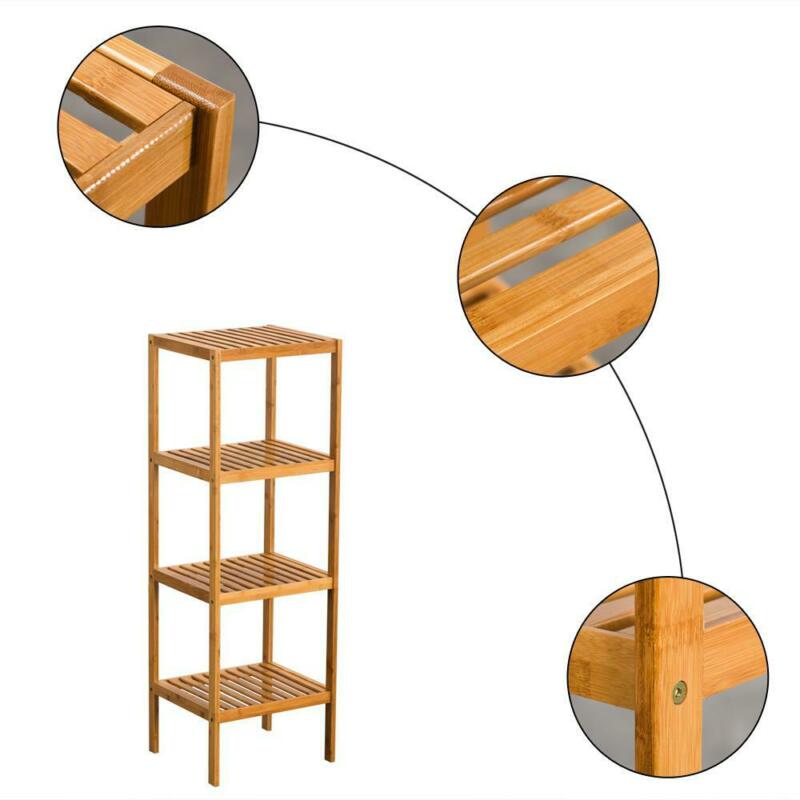 4 Tier Book Shelf Unit Bamboo Bookcase Bathroom Kitchen Storage Rack Display