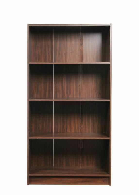 4 Tier Bookcase Tall Display Shelving Storage Unit Wood Furniture Walnut