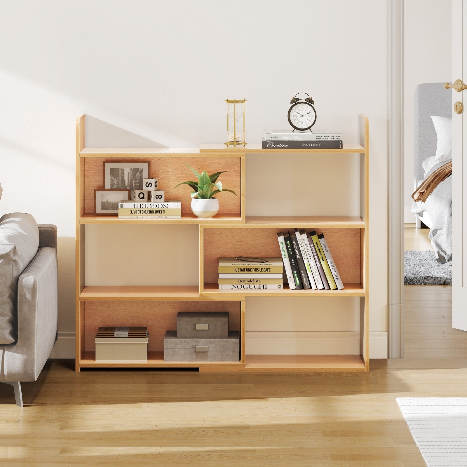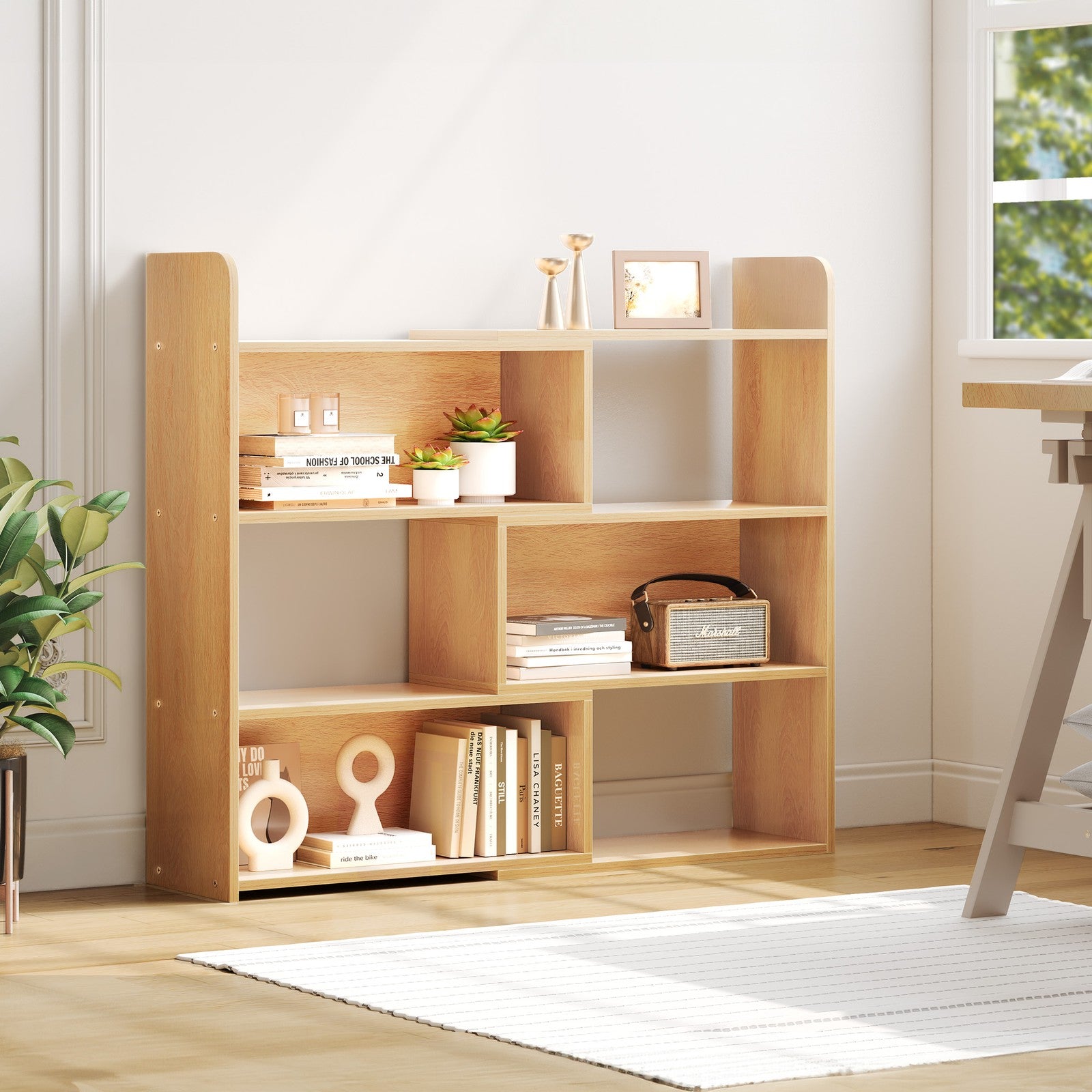 4-Tier Bookshelf with 6 Storage Shelves, Oak Bookcase for Living Room/Office