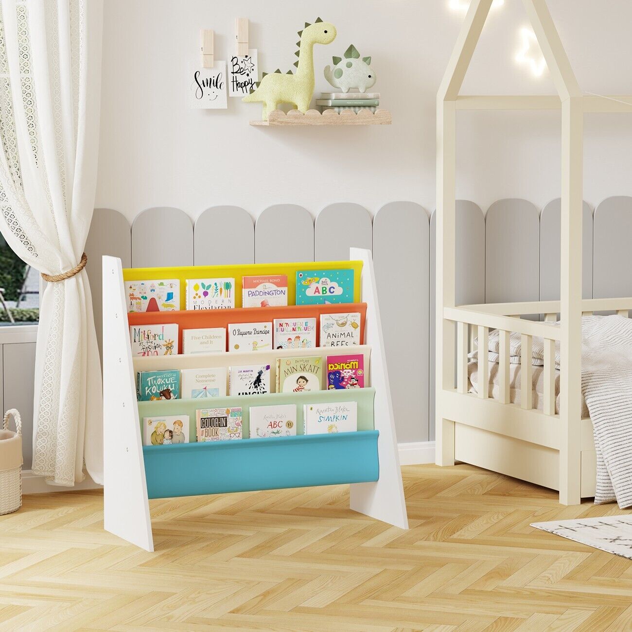 4 Tier Children Sling Book Rack Bookshelf Wooden Kids Book Rack Storage Shelf
