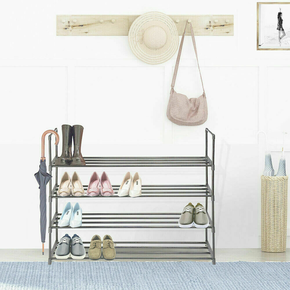 4 Tier Extendable Shoe Rack 16 Pairs Space Saving Storage Organiser Shelf