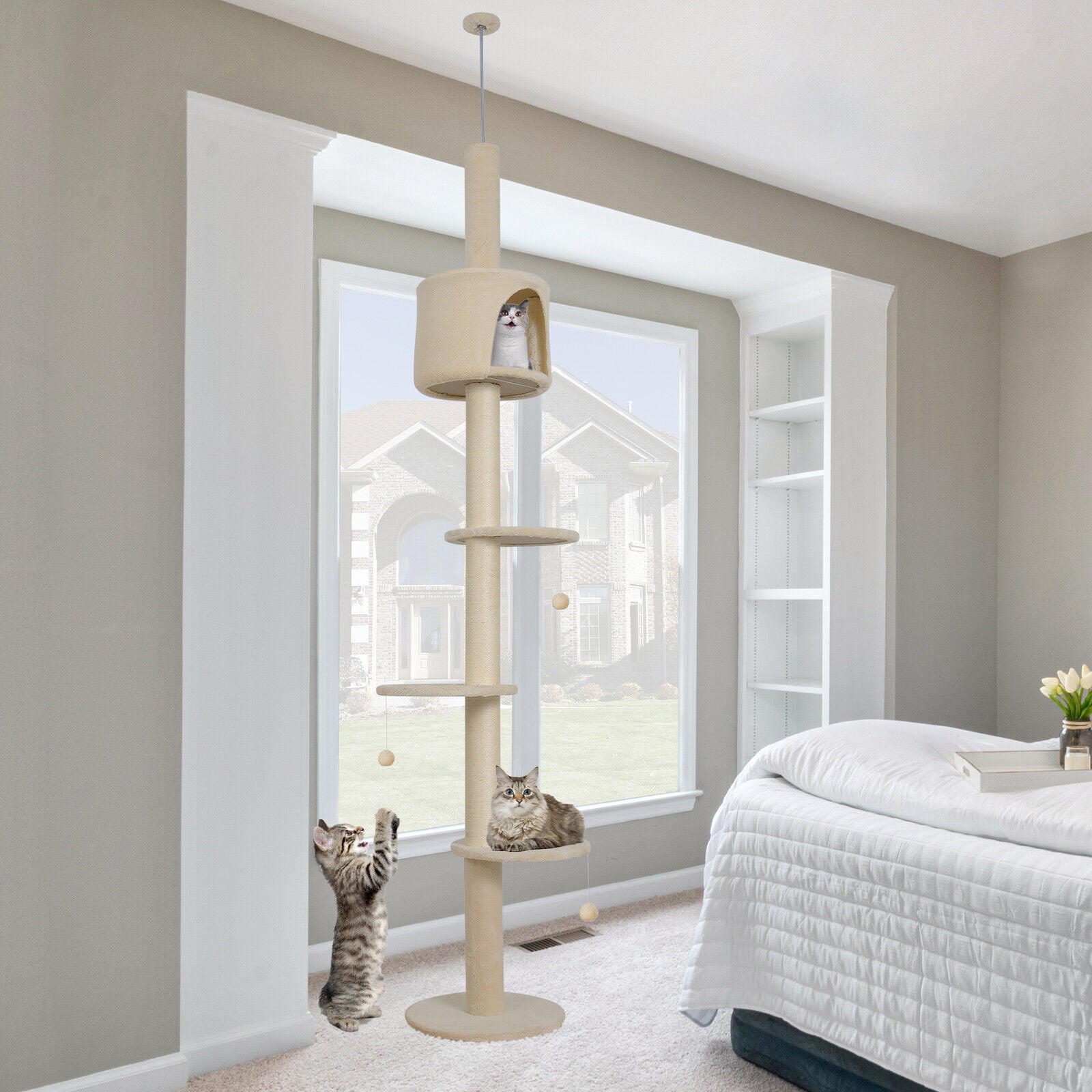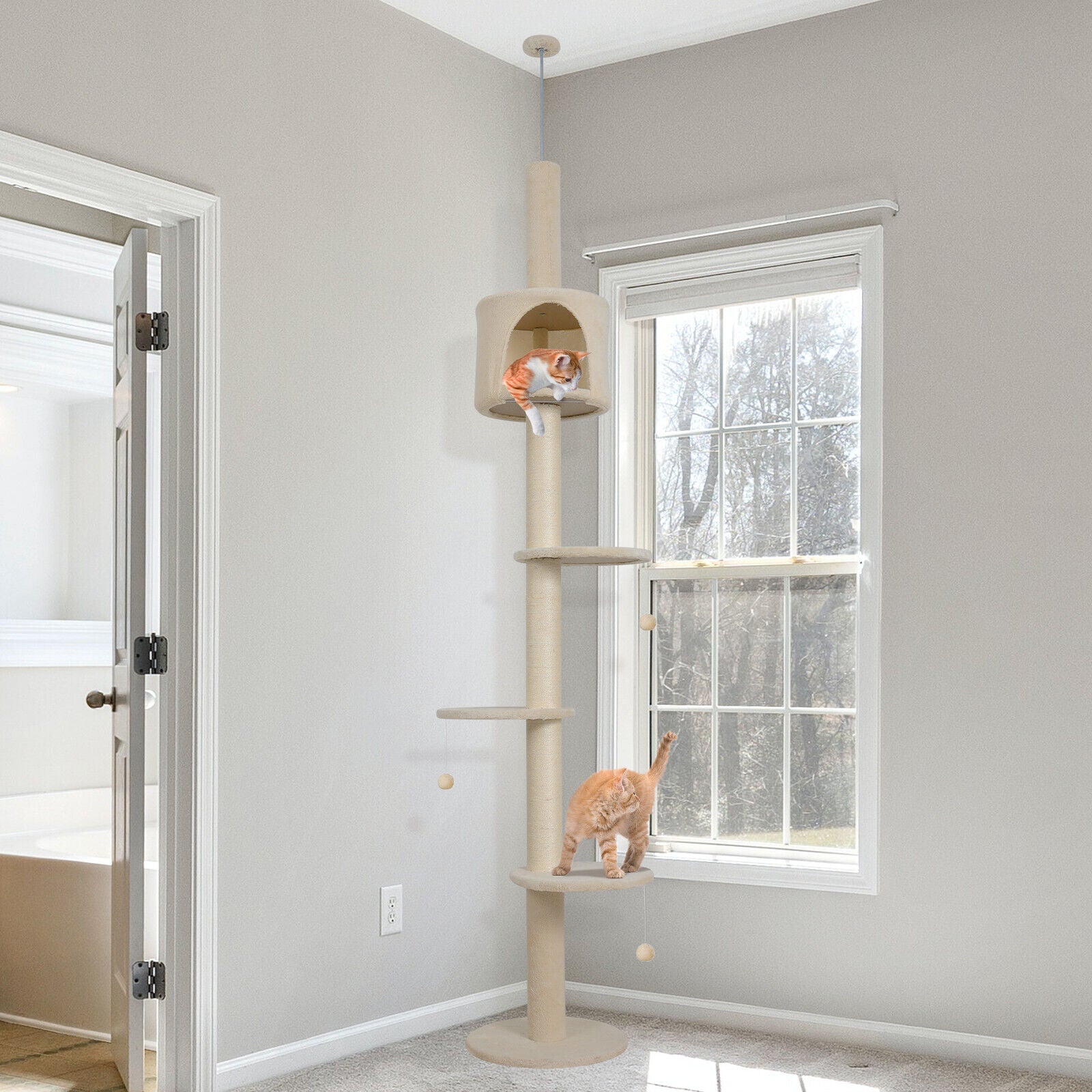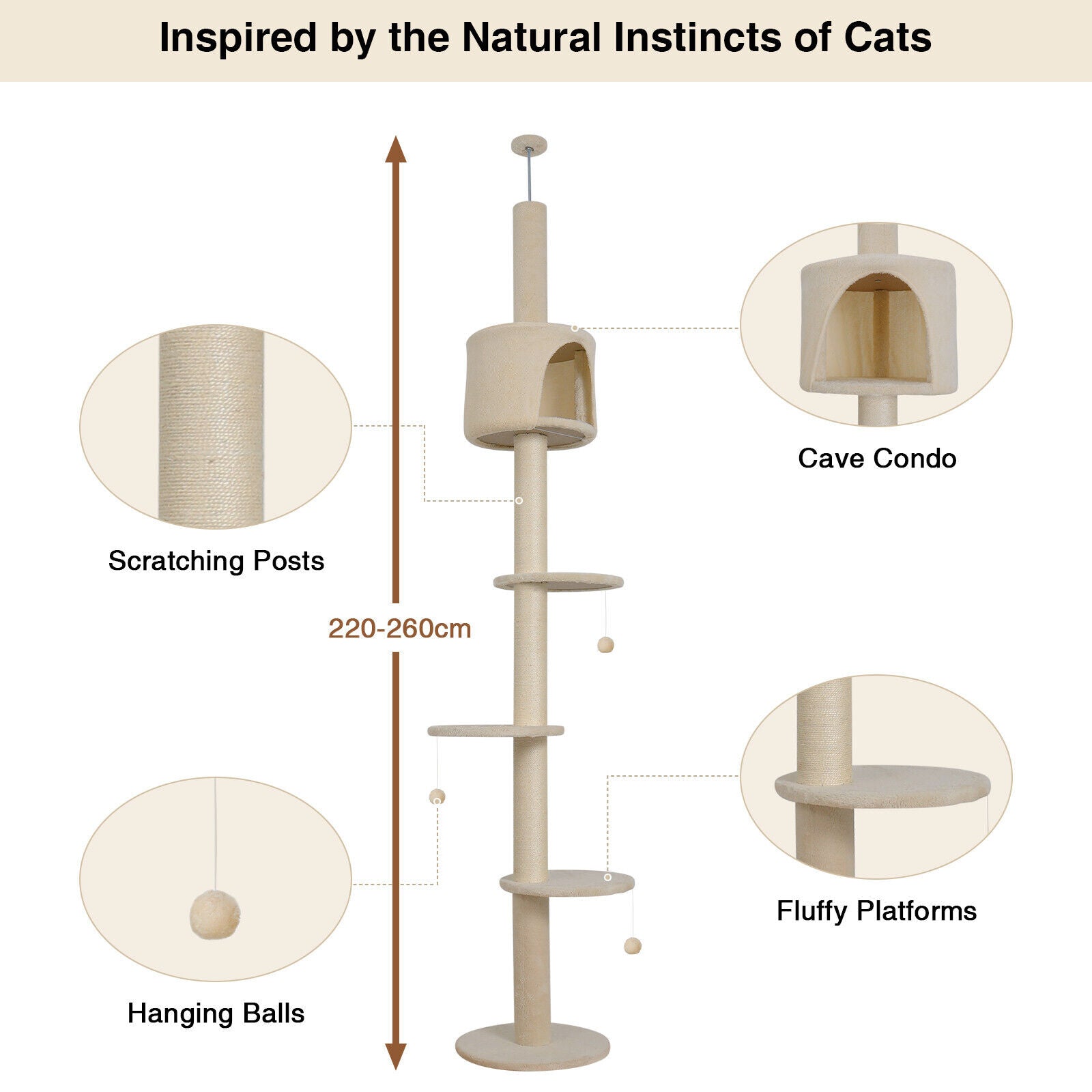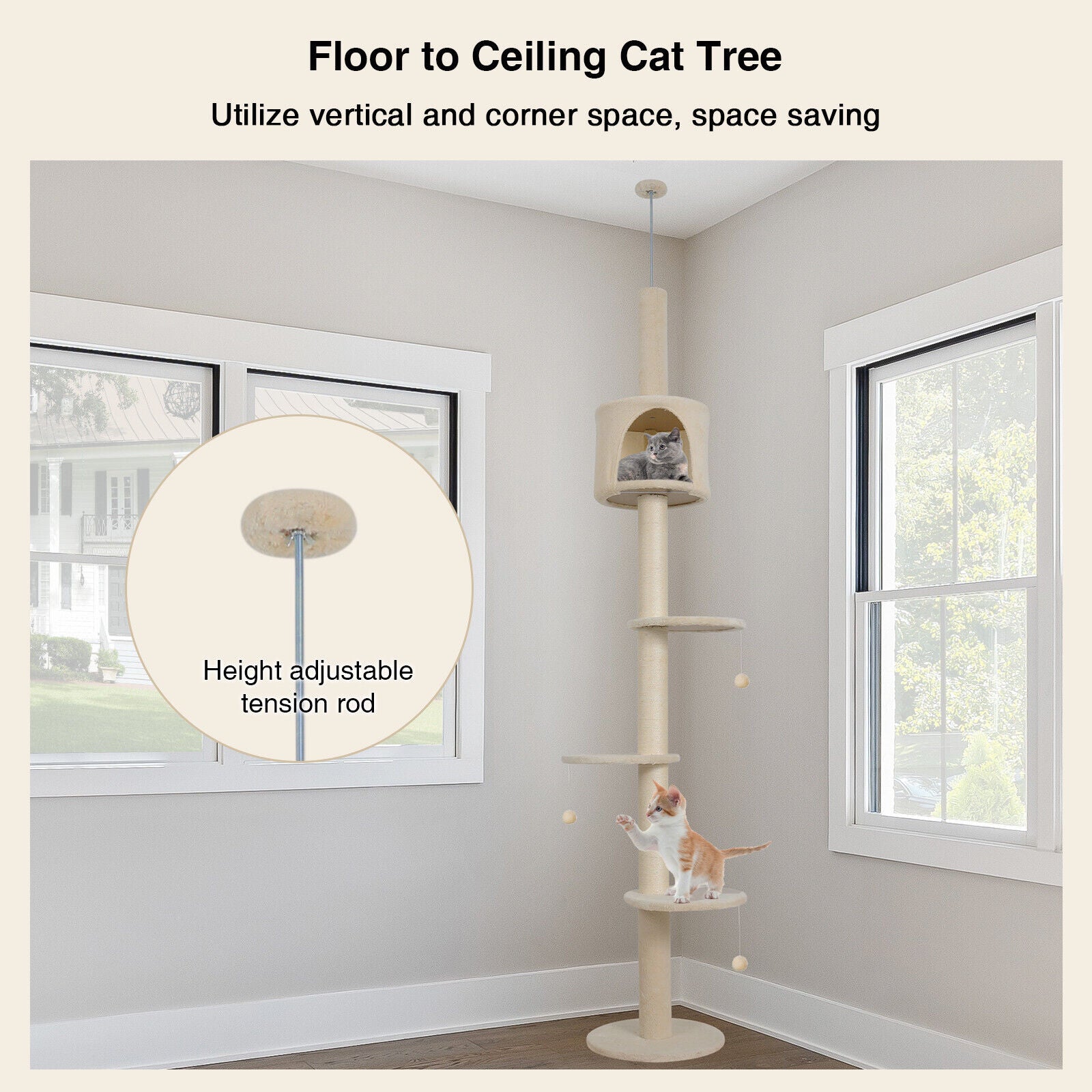 4-Tier Floor to Ceiling Cat Tree Adjustable Climbing Tower Kitty Activity Center