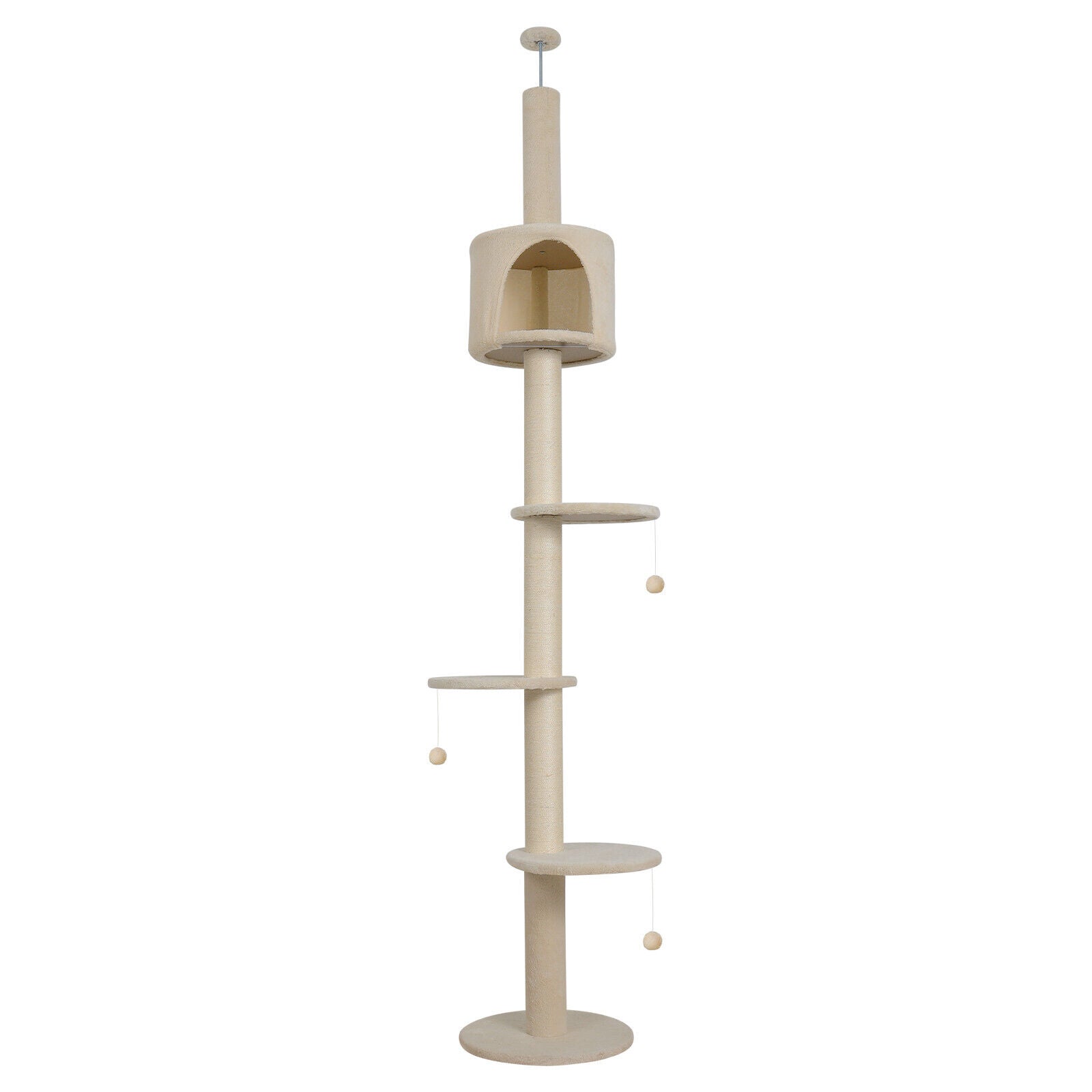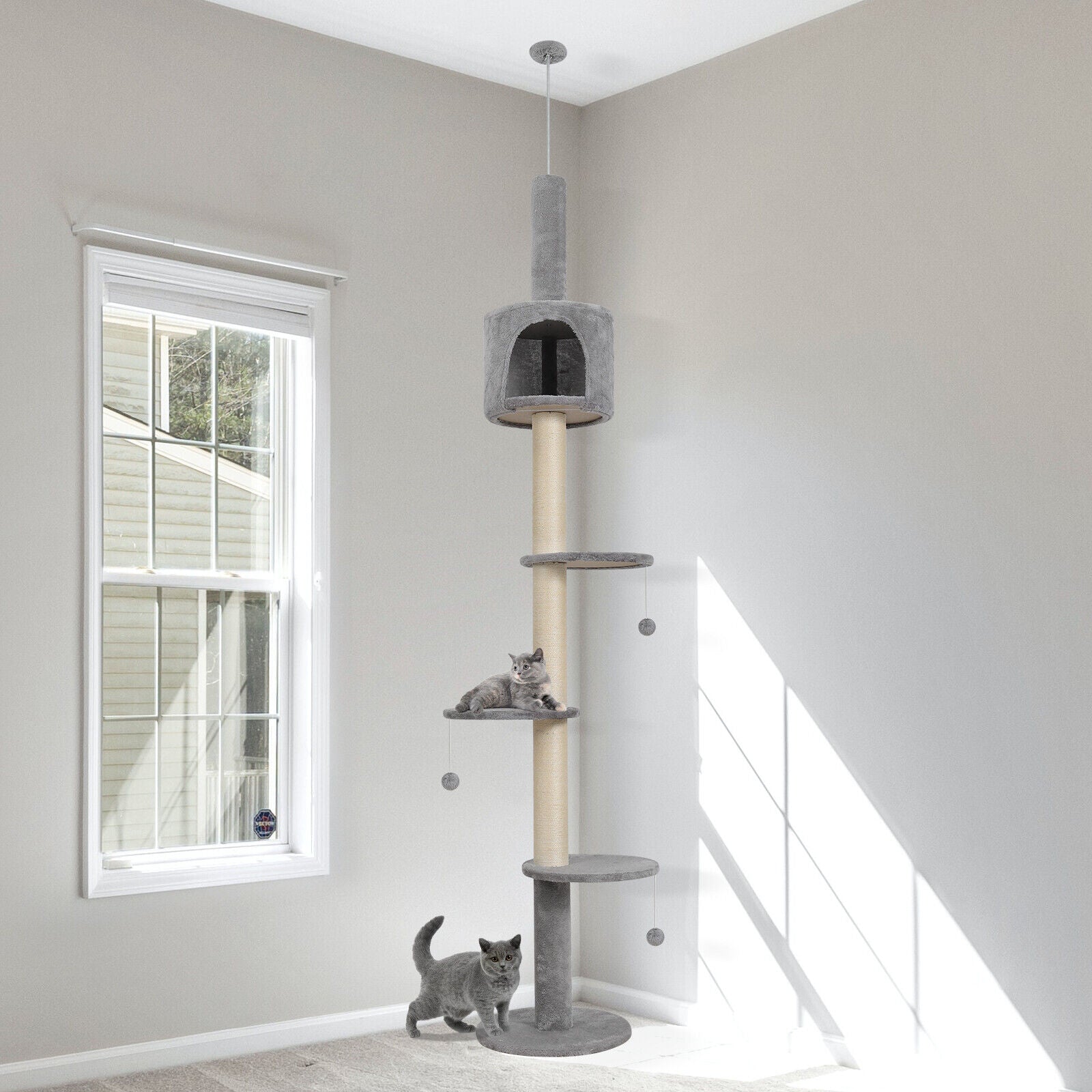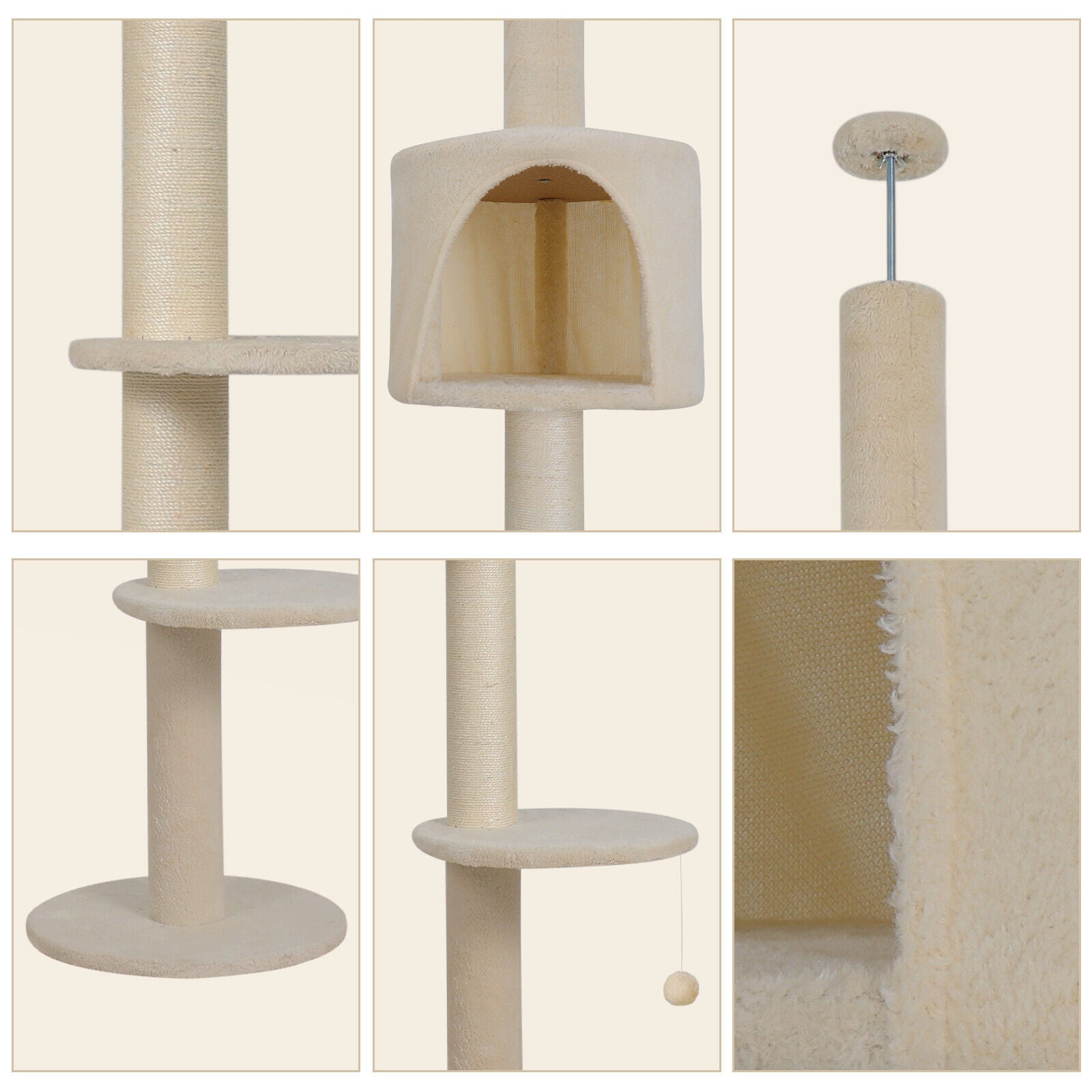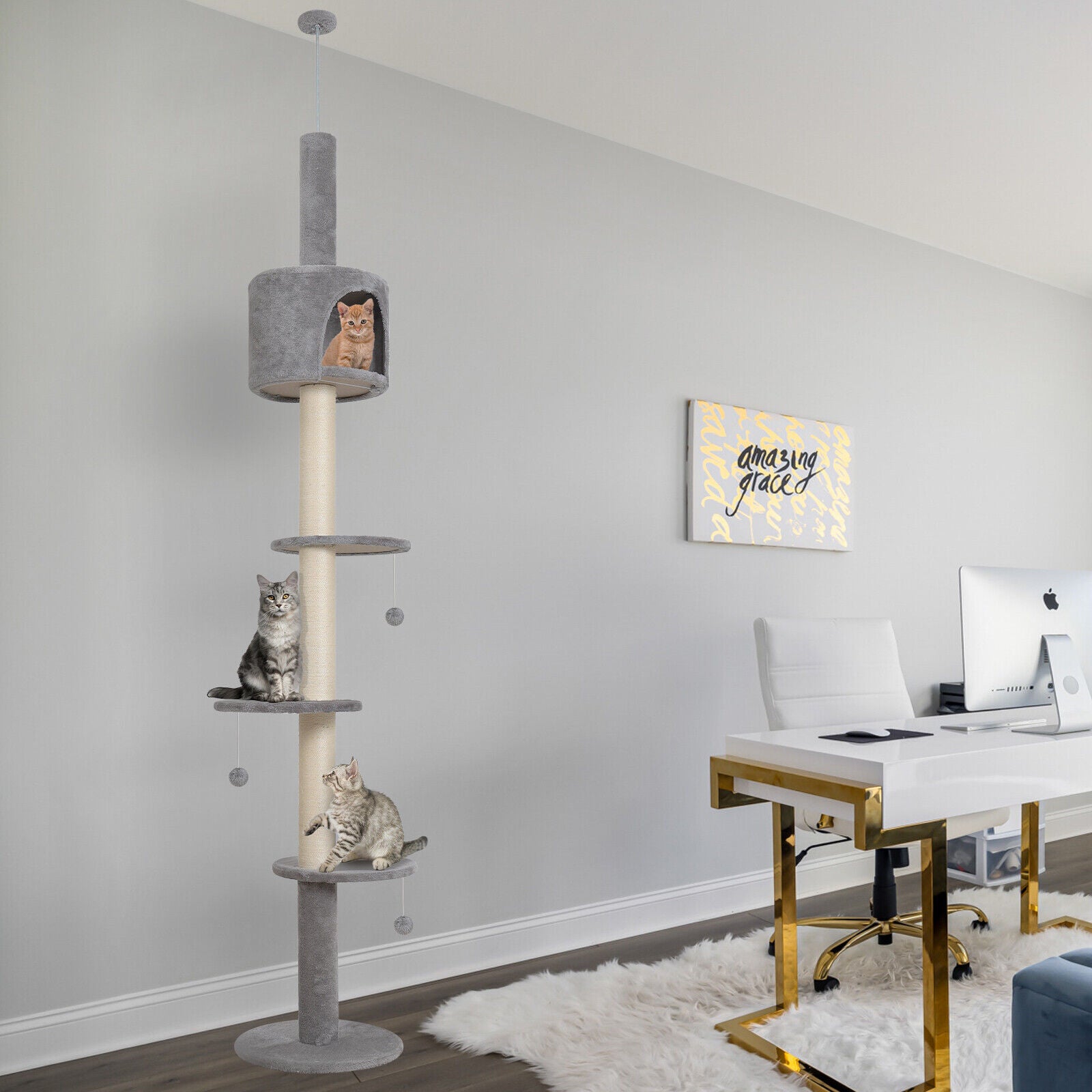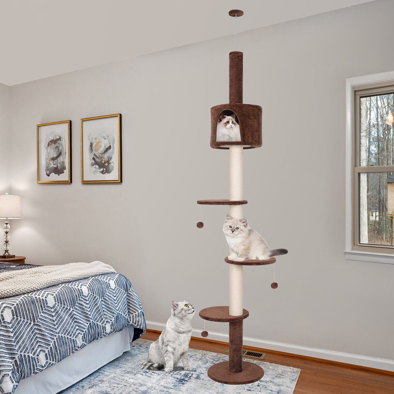 4-Tier Floor to Ceiling Cat Tree Adjustable Climbing Tower Kitty Activity Center