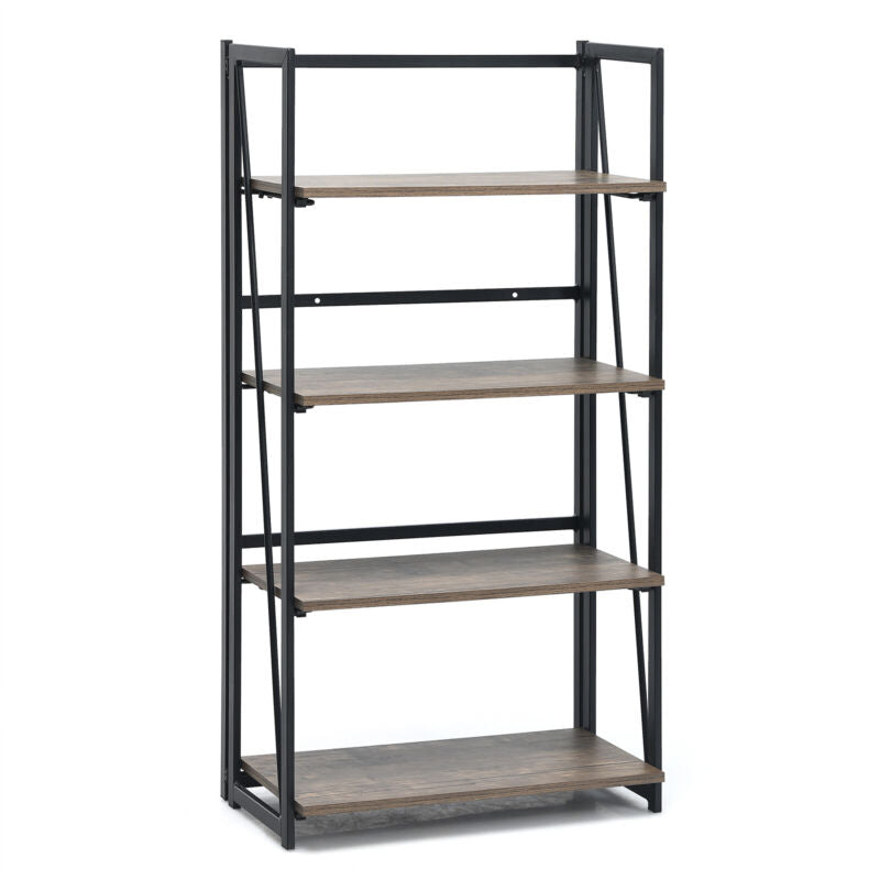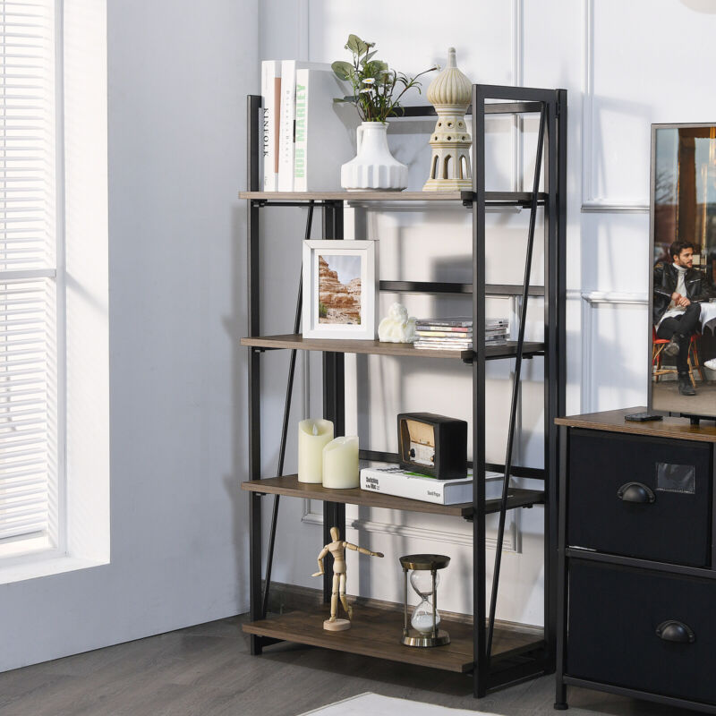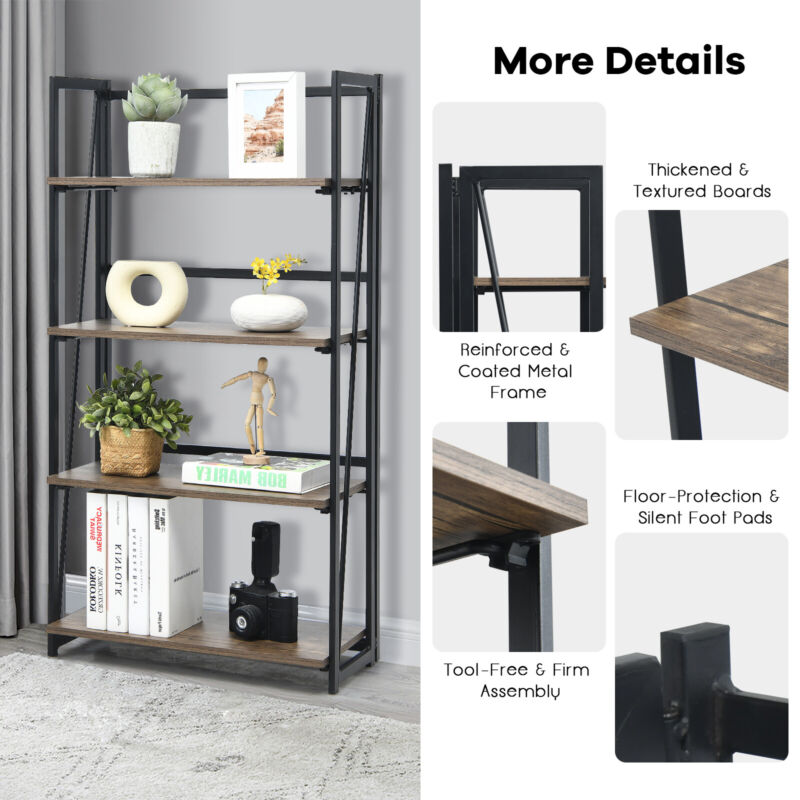 4-Tier Folding Bookshelf Industrial Bookcase Storage Organizer Display Stand