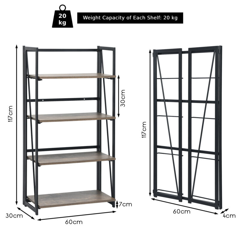 4-Tier Folding Bookshelf Industrial Bookcase Storage Organizer Display Stand