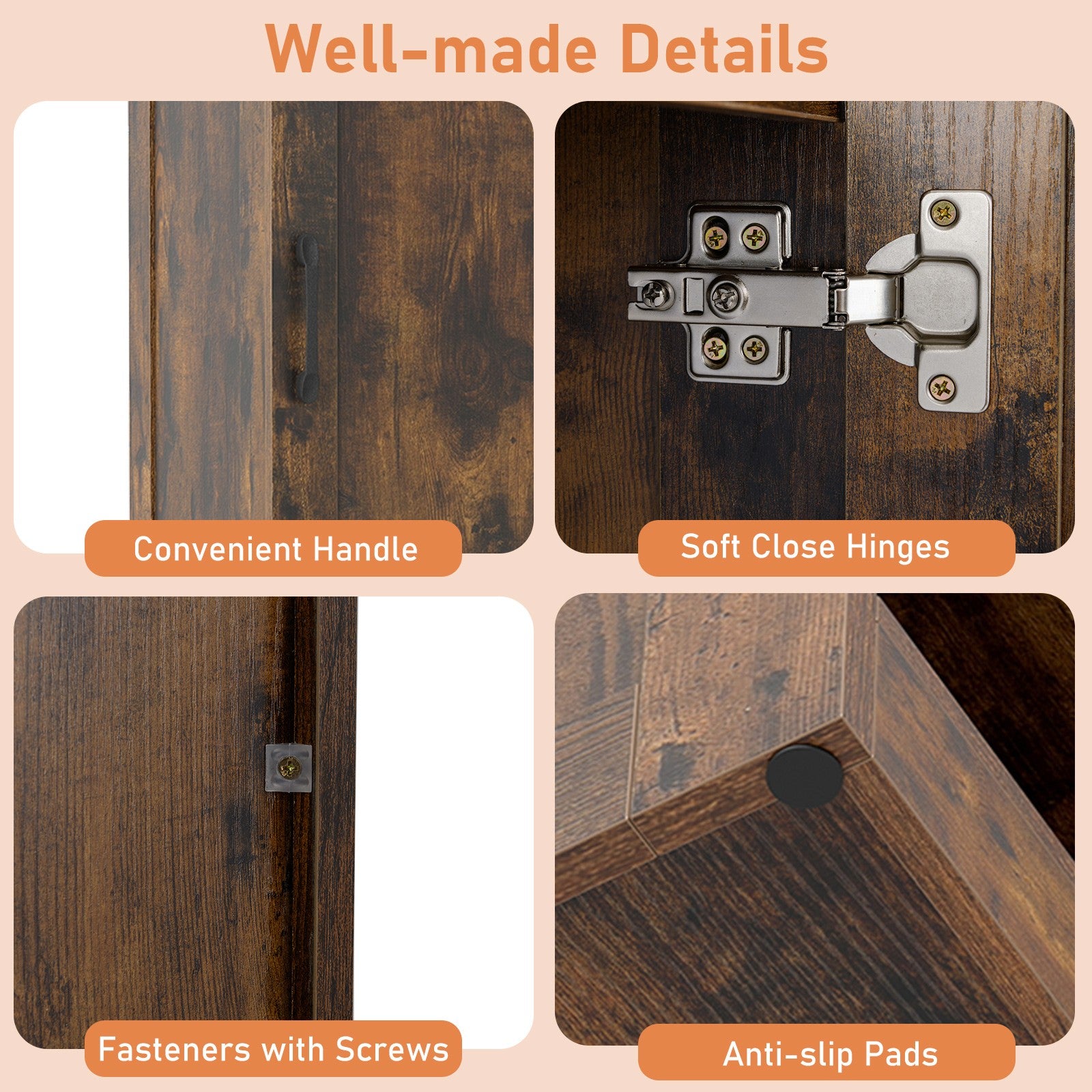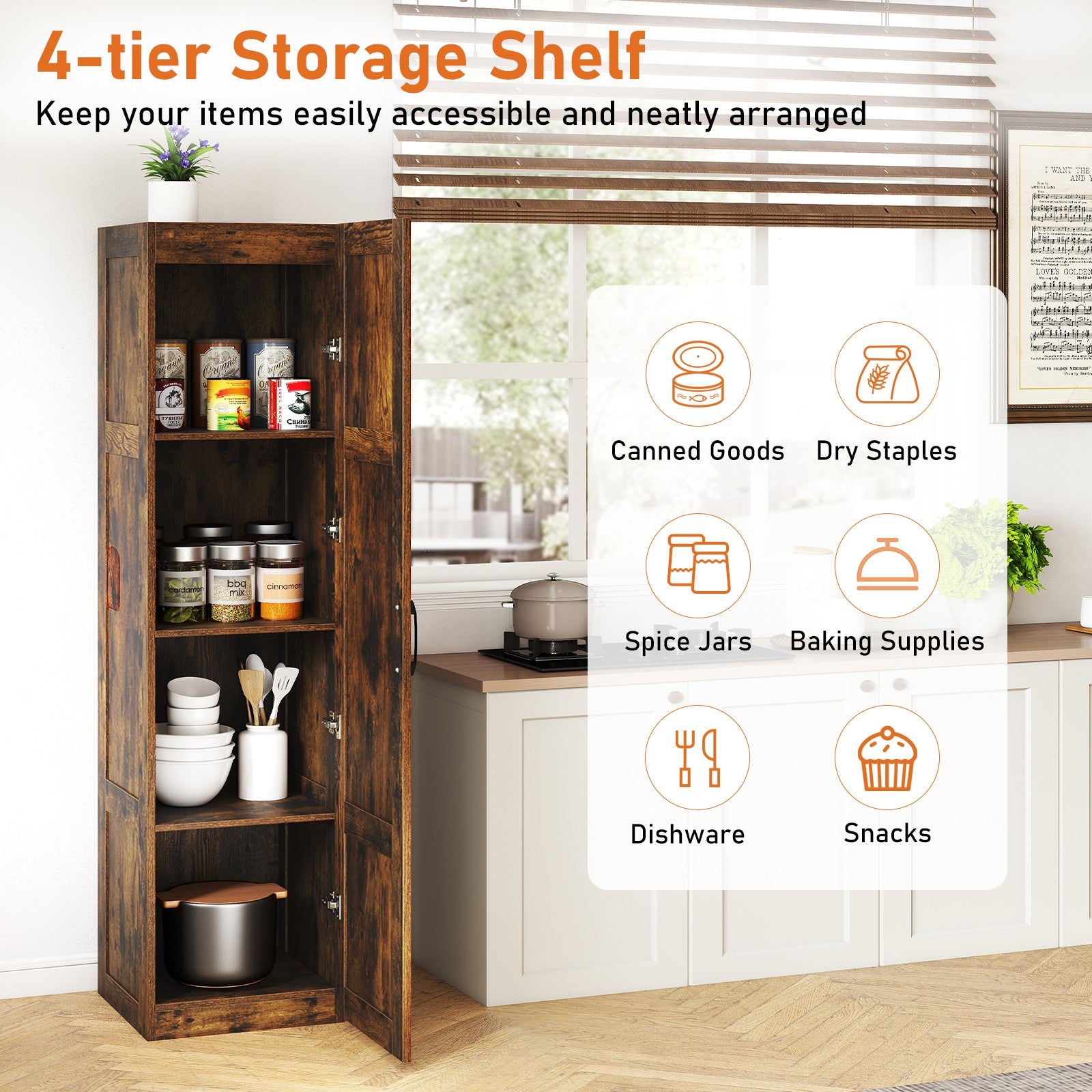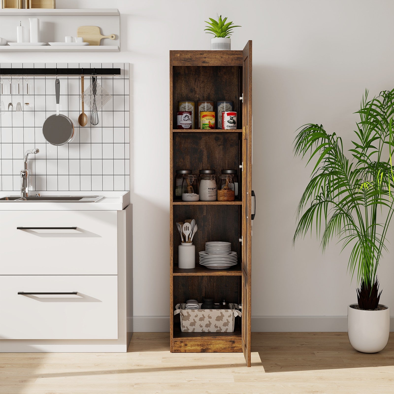 4-Tier Freestanding Floor Cabinet with Door-Brown