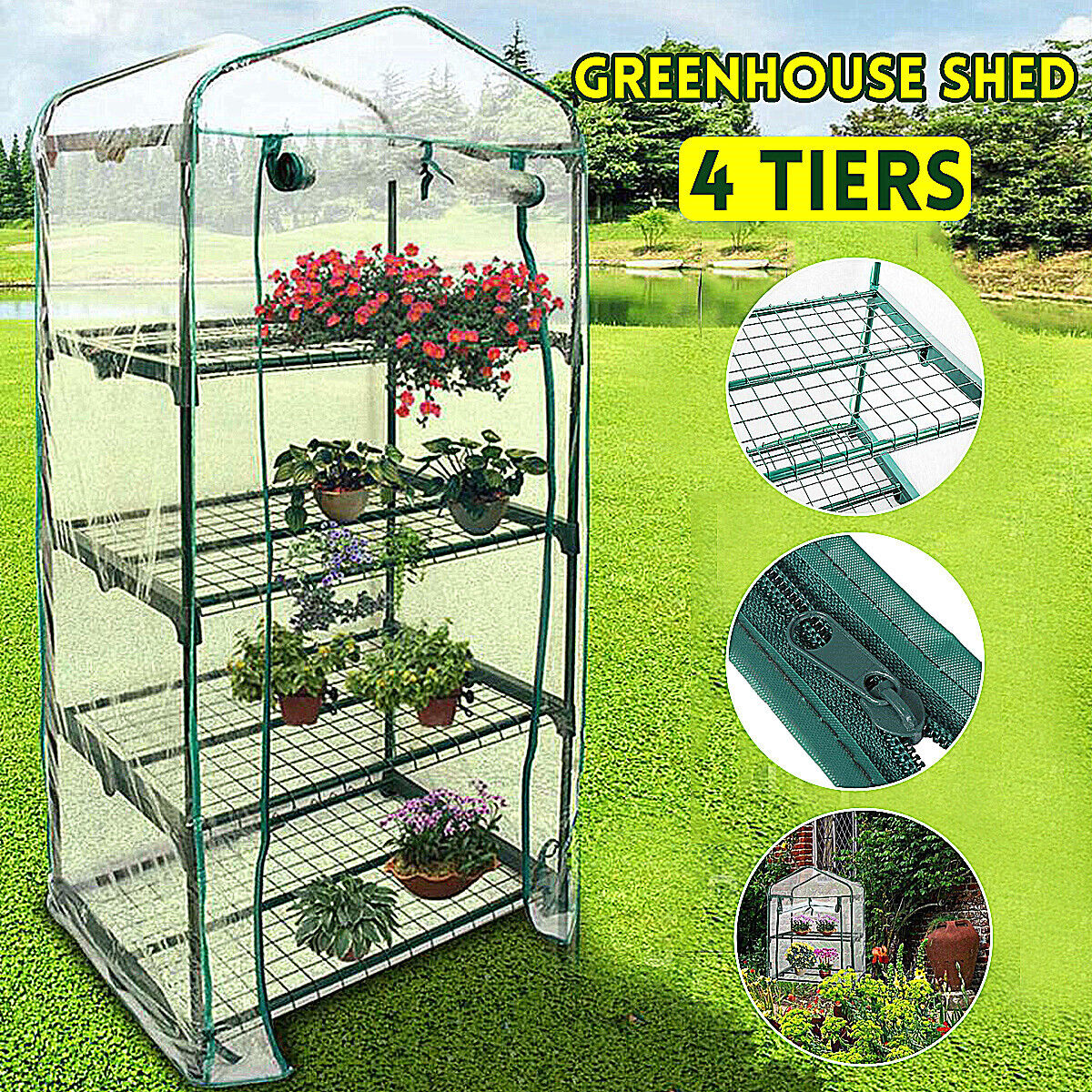 4 Tier Greenhouse Frame Outdoor Garden Shed Plant Grow Green House W/ PVC Cover