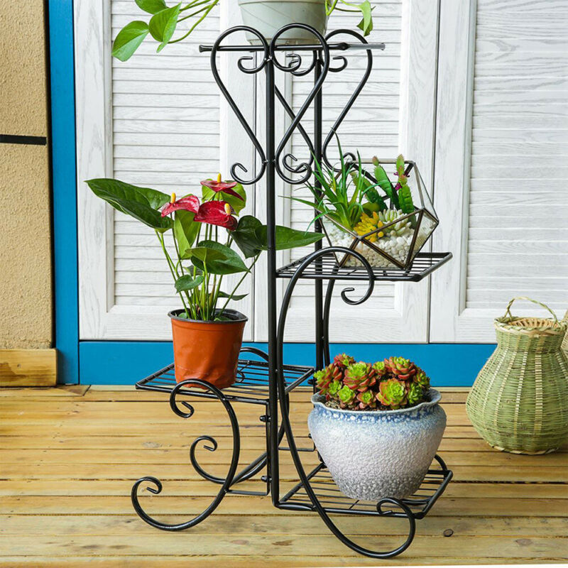 4 Tier Indoor Outdoor Plant Stand Flower Pot Display Shelf Metal Rack Home Decor