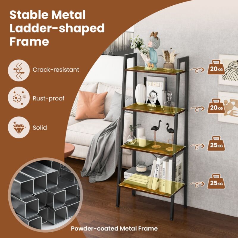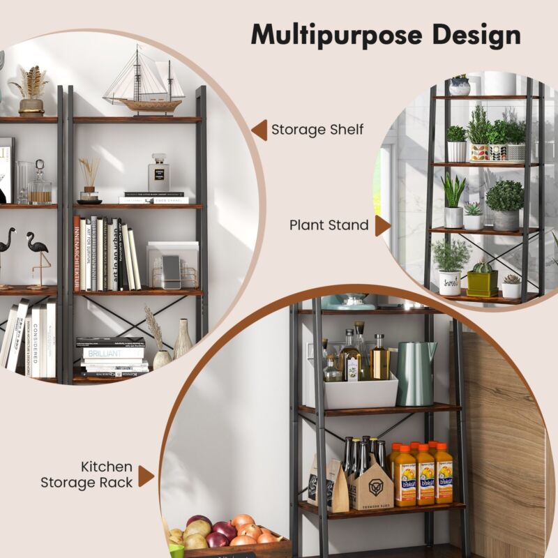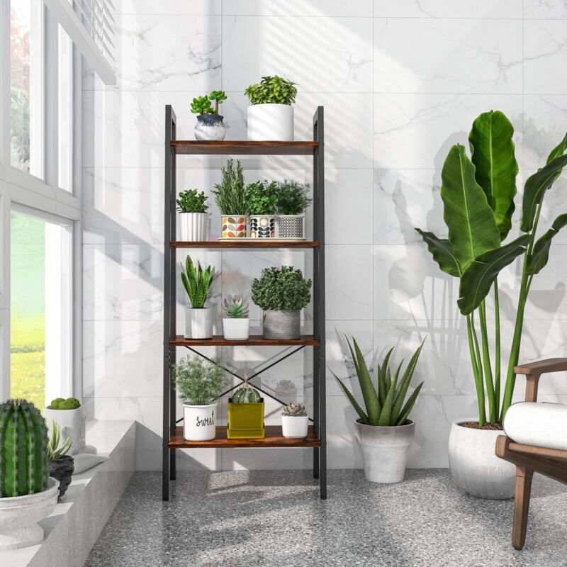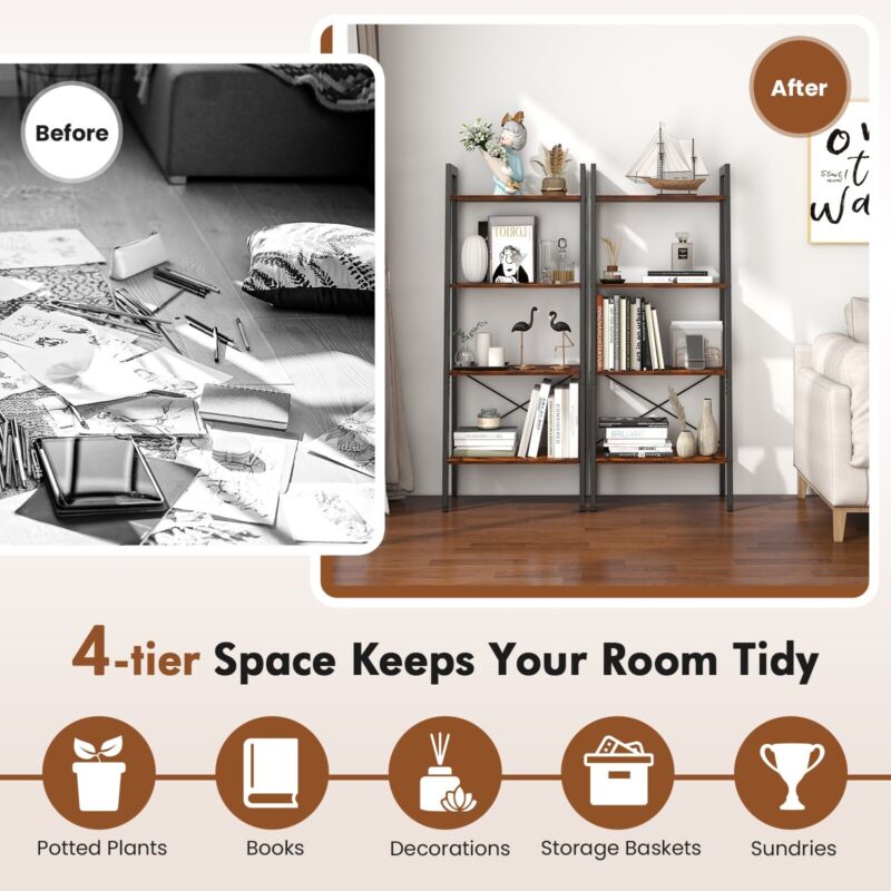 4-Tier Industrial Bookshelf Free Standing Display Shelf Storage Rack for Bedroom