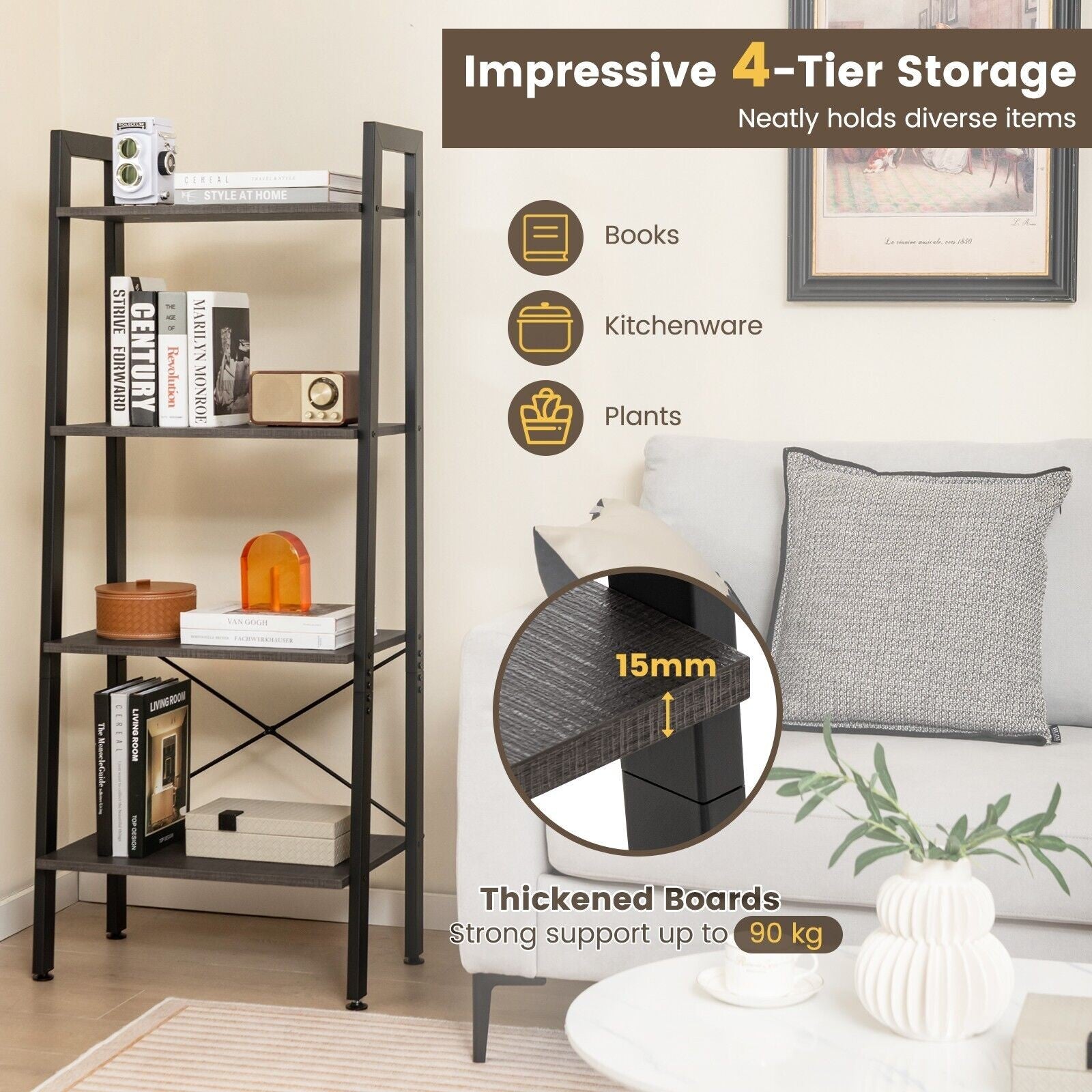 4-Tier Industrial Bookshelf Free Standing Display Shelf Storage Rack for Bedroom