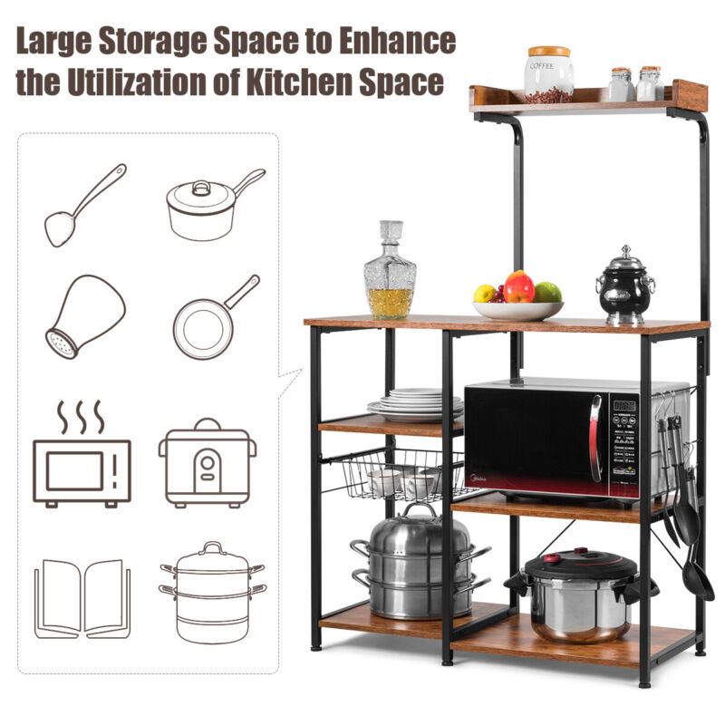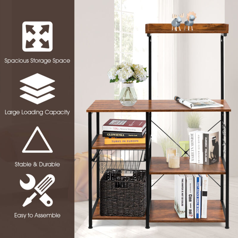 4-Tier Industrial Kitchen Baker’s Rack Utility Storage Shelf w/ Basket & Hooks