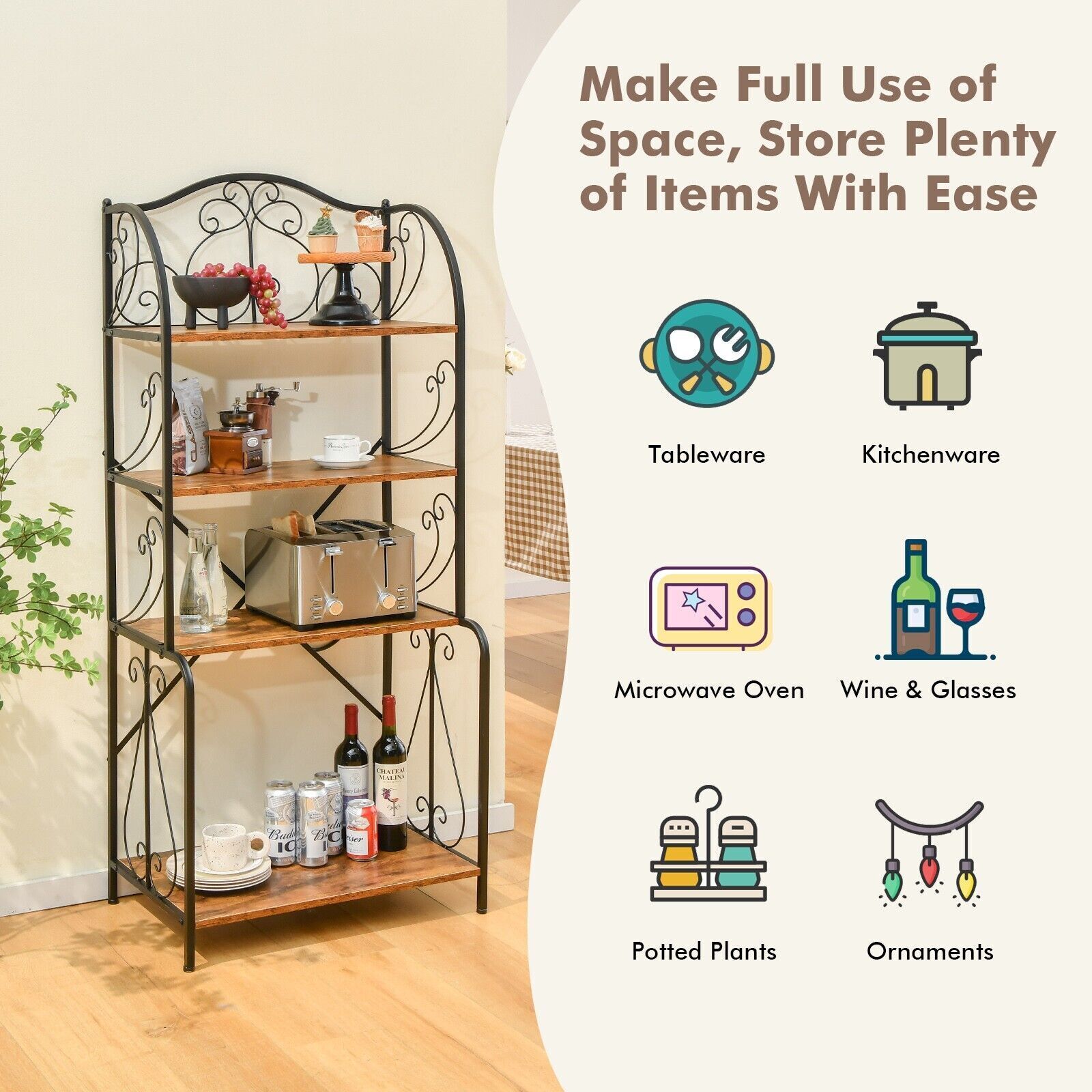 4-Tier Industrial Storage Organizer Display Stand Kitchen Baker Rack Open Shelf