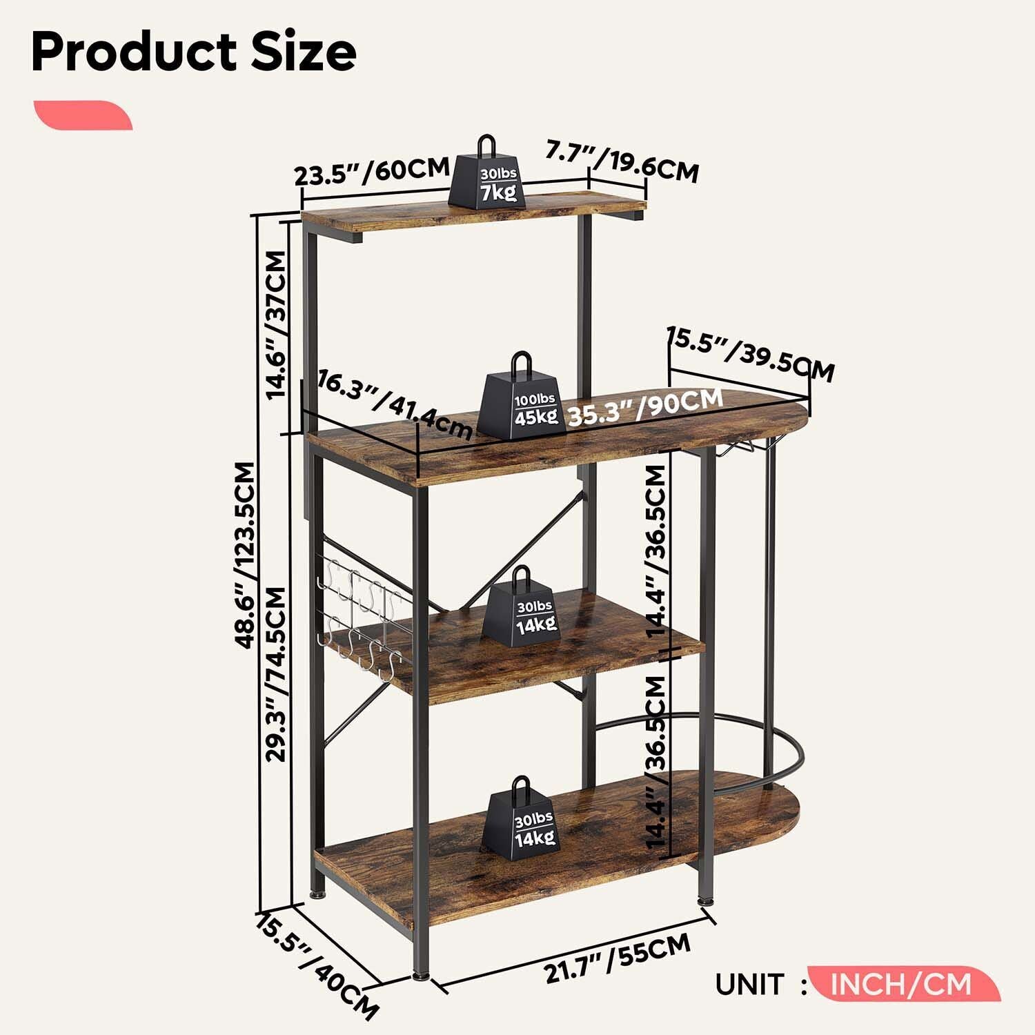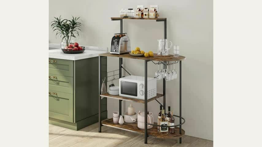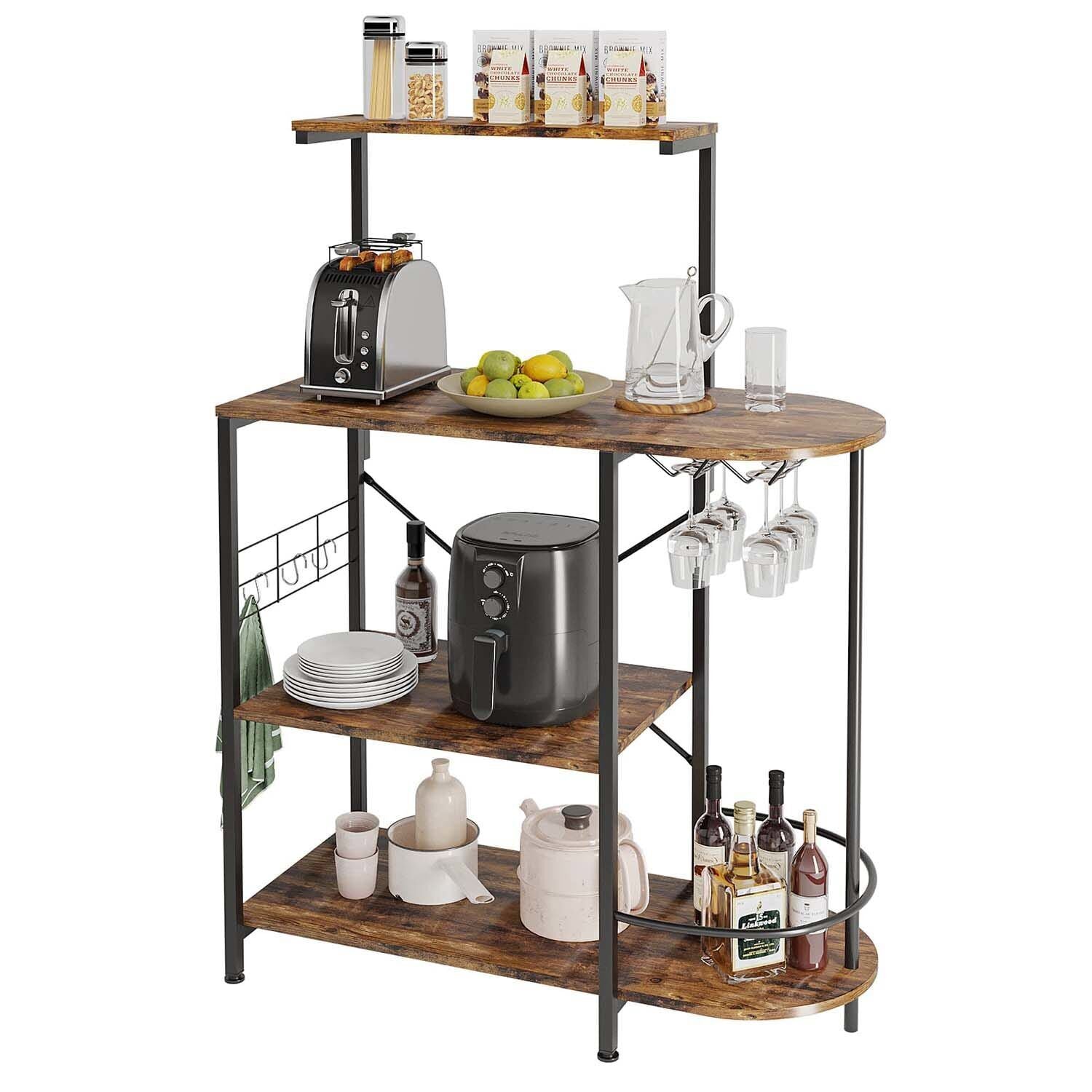 4 Tier Kitchen Baker Rack Cupboard Coffee Bar Sideboard Storage Organizer Retro