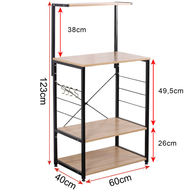 4 Tier Kitchen Stand Shelf w/ 4 Hook Microwave Oven Bakers Storage Shelves Rack