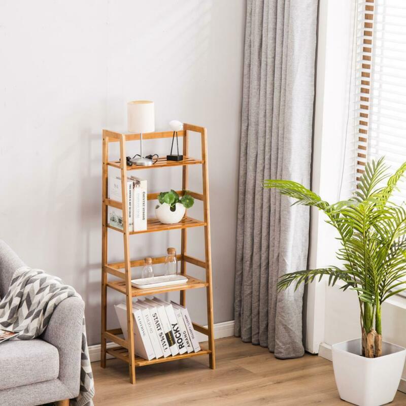 4 Tier Ladder Bookshelf Shelf Unit Bamboo Bookcase Bathroom Storage Display Rack
