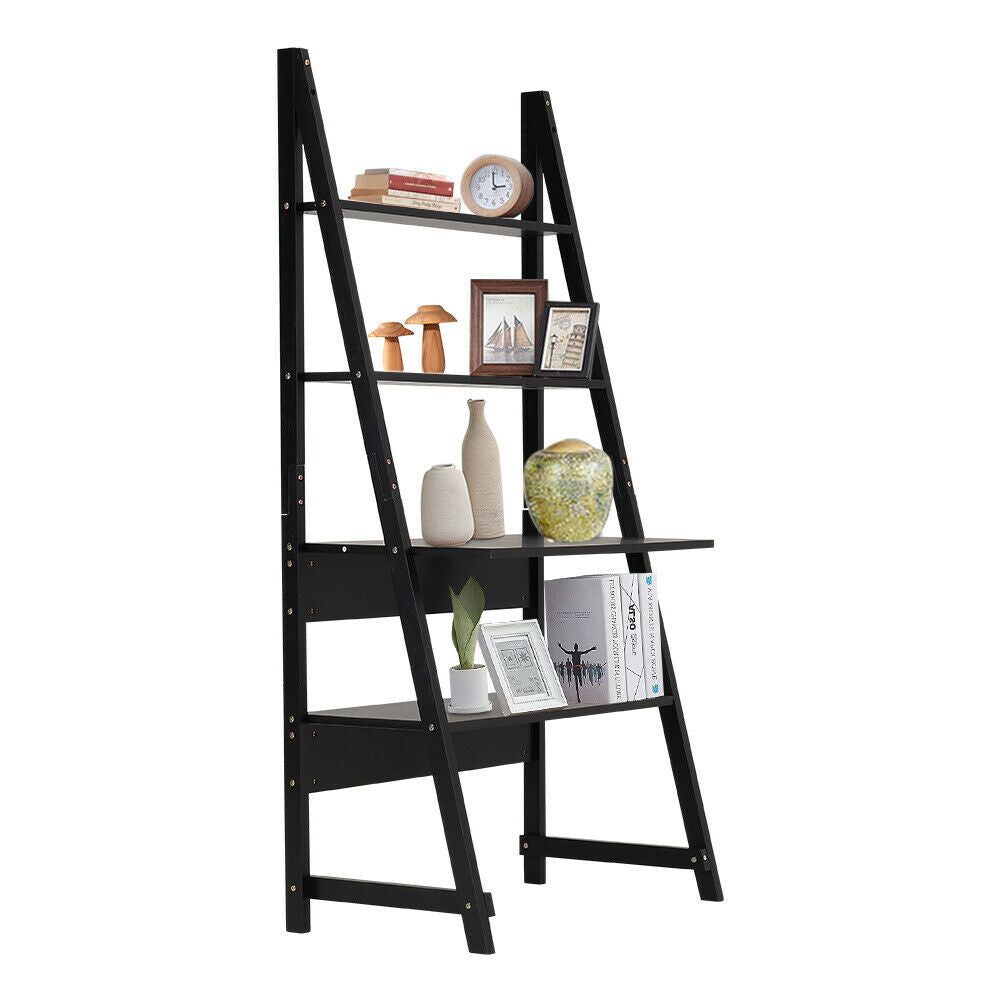 4 Tier Ladder Corner Bookcase Shelf Rack Display Organiser Black Storage Display