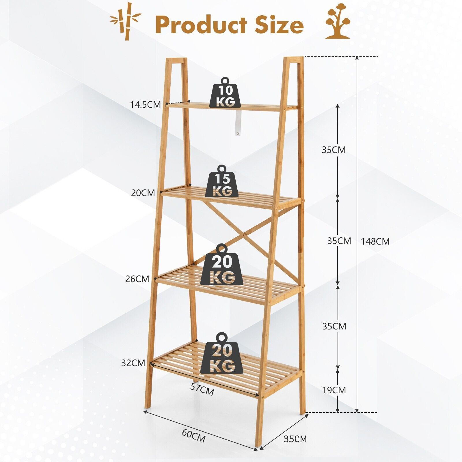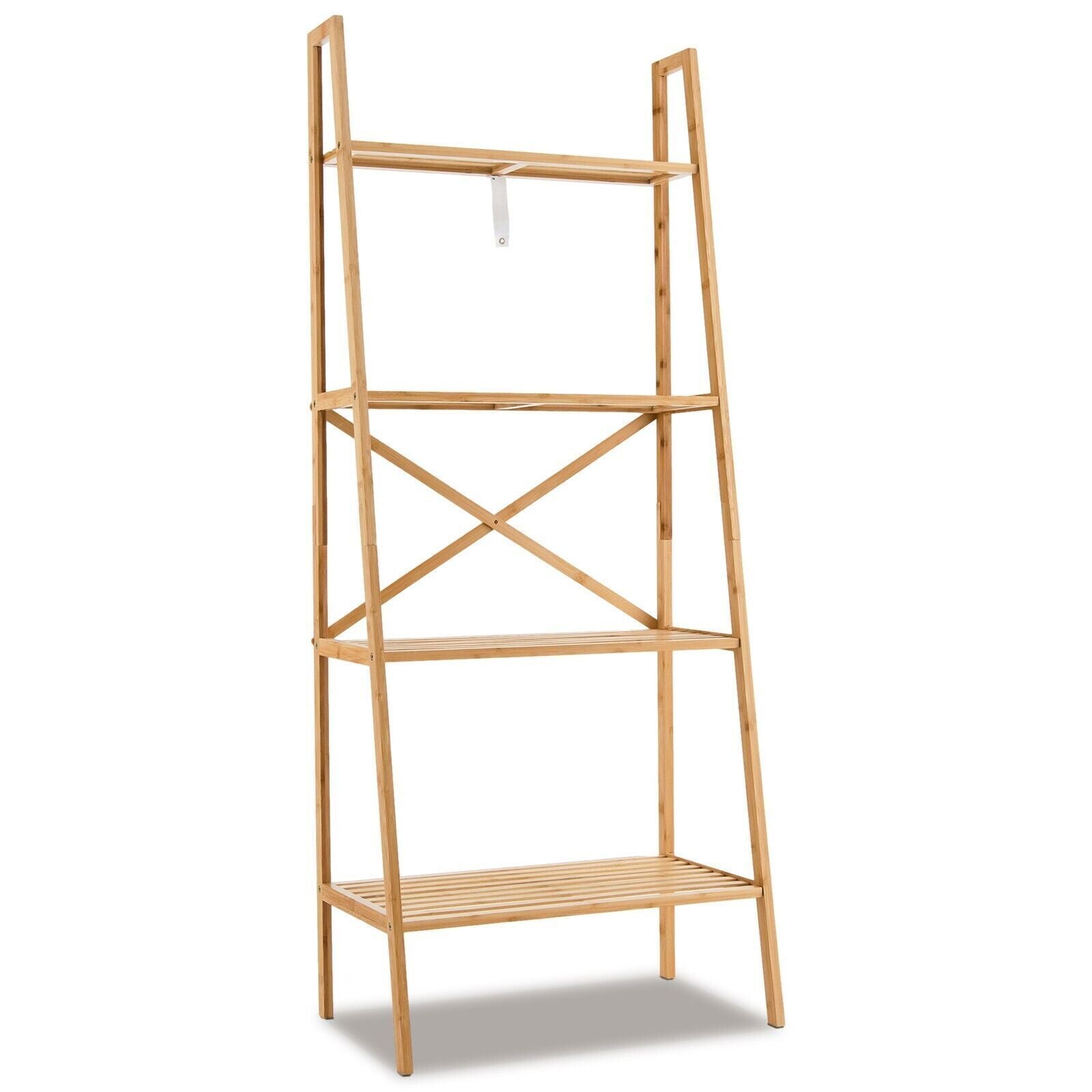 4-Tier Ladder Shelf Bamboo Bookshelf Bookcase Storage Organizer Plant Stand