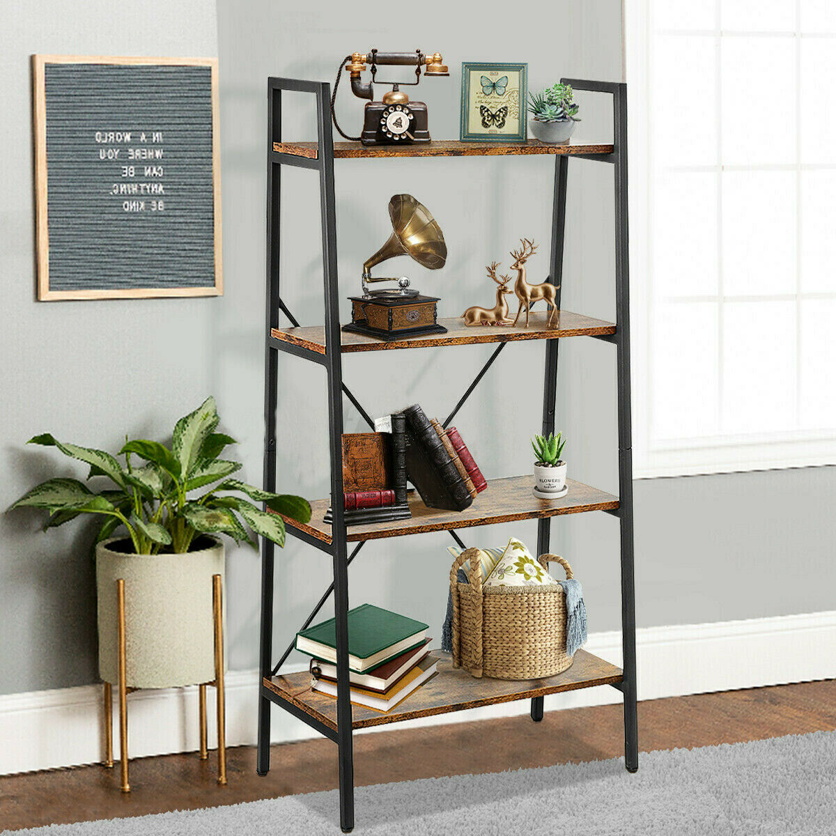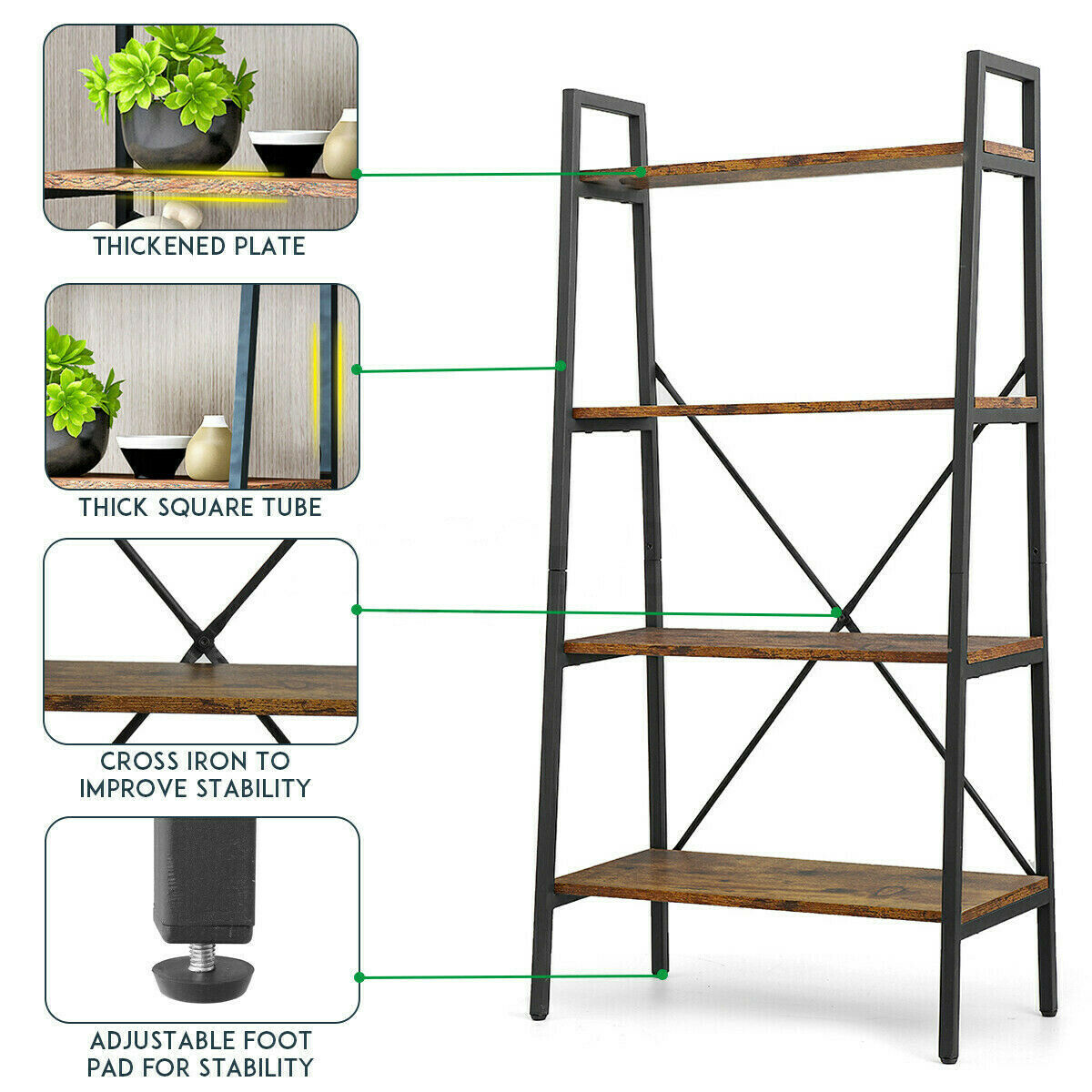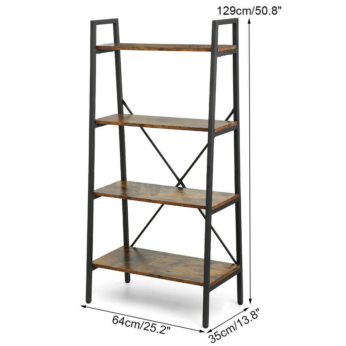 4-Tier Ladder Shelf Bookcase Bookshelf Plant Flower Stand Storage Metal Frame UK