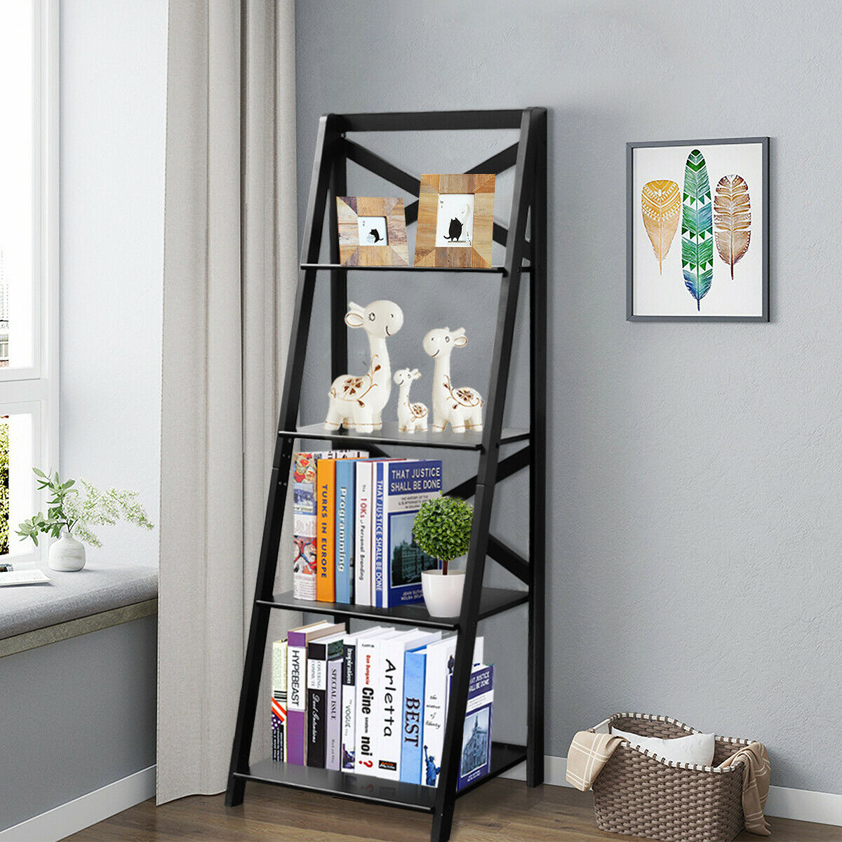 4-Tier Ladder Shelf Wooden Storage Rack Display Bookcase Plant Flower Stand