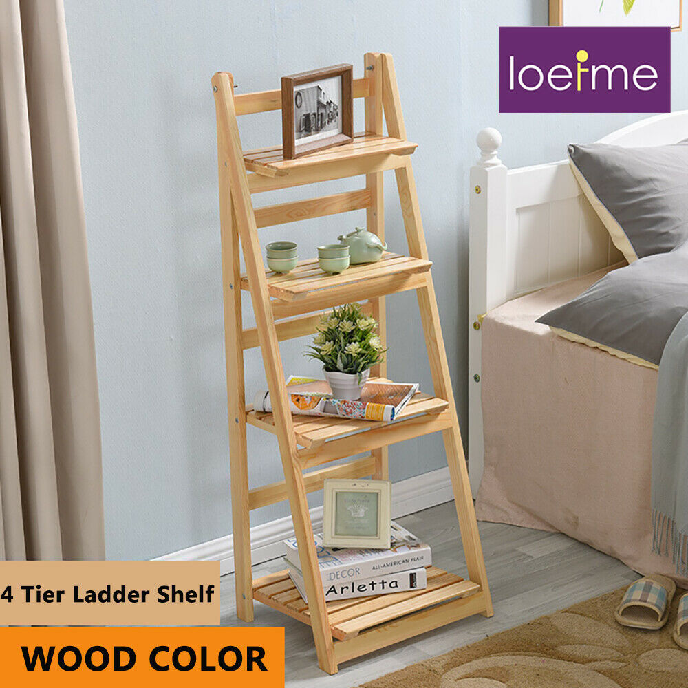 4 Tier Ladder Wall Shelf Bookcase Shelving Unit Wood Storage/Displa