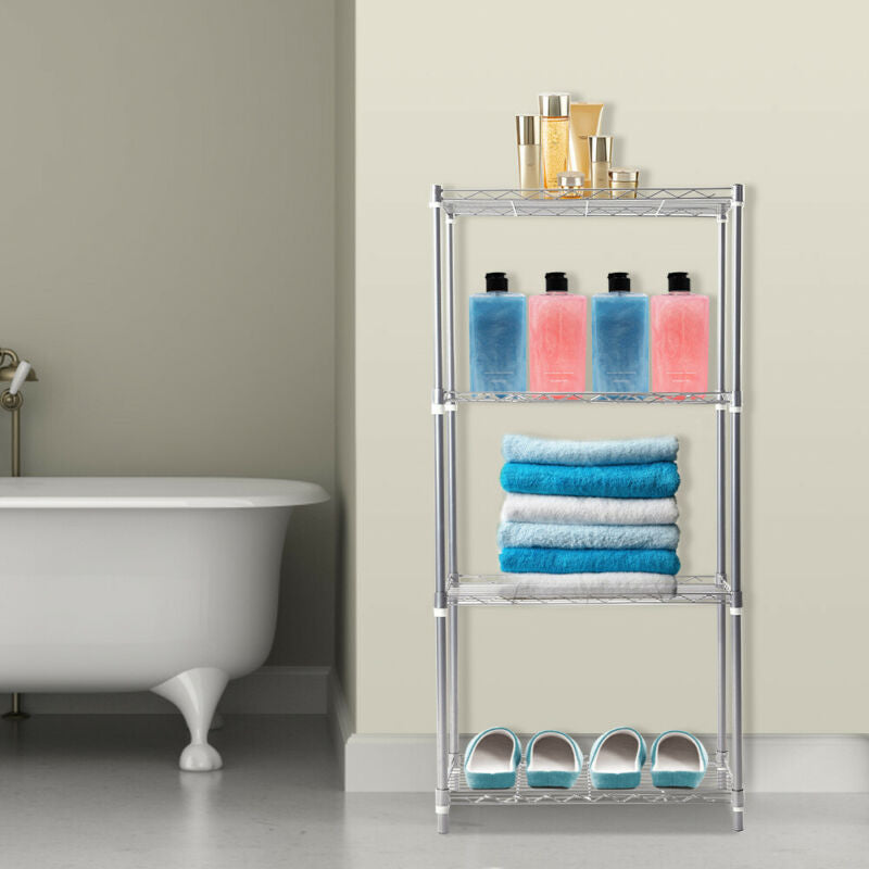 4 Tier Metal Wire Shelving Kitchen Storage Rack Holder Organiser Shelf Unit