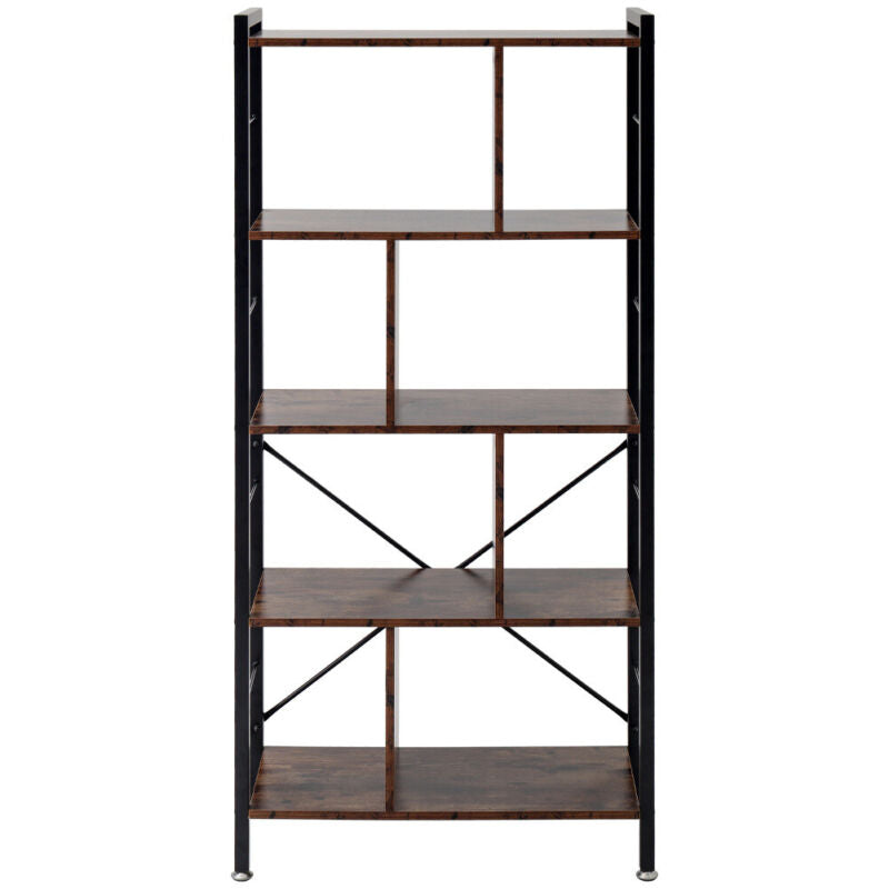 4 Tier Metal Wood Bookshelf Industrial Stand Living Room Display Rack Organiser