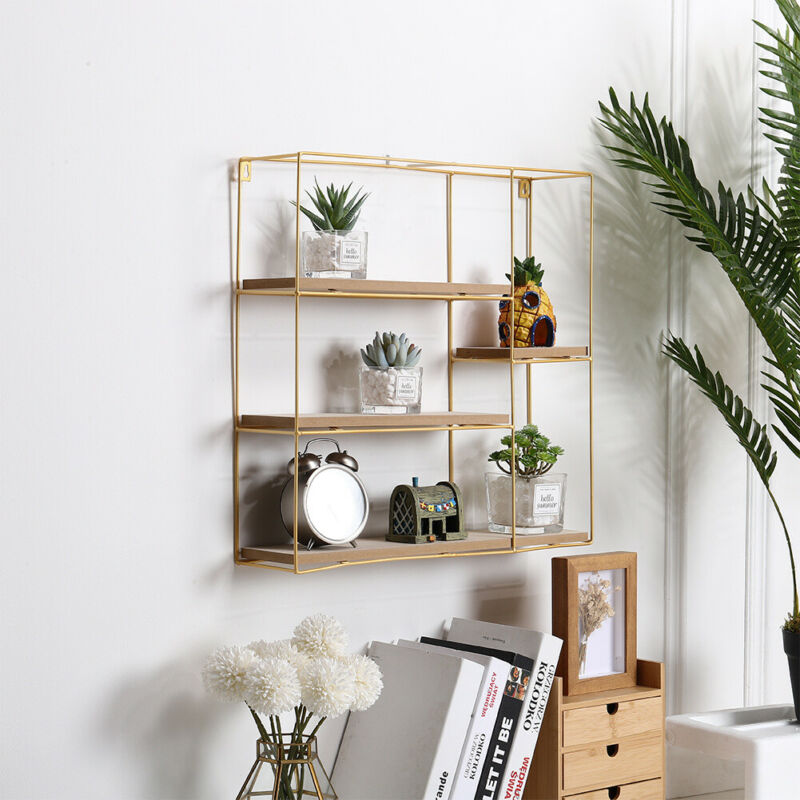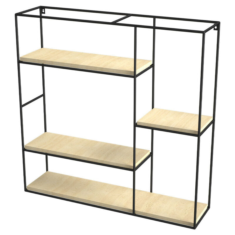 4 Tier Metal Wood Floating Wall Shelf Square Shelving Unit Storage Display Rack