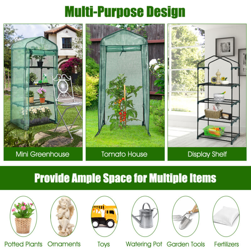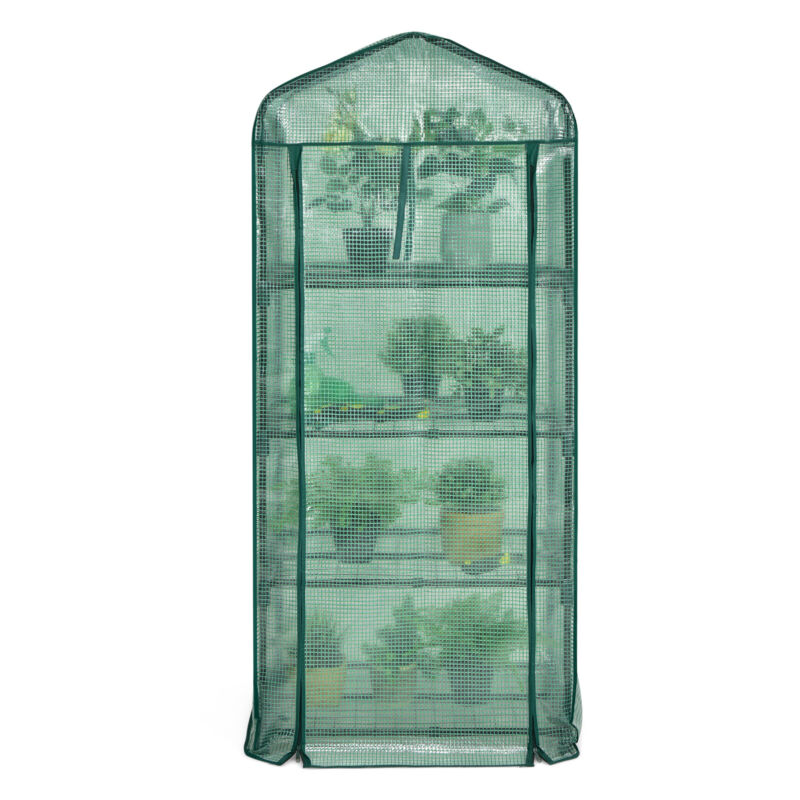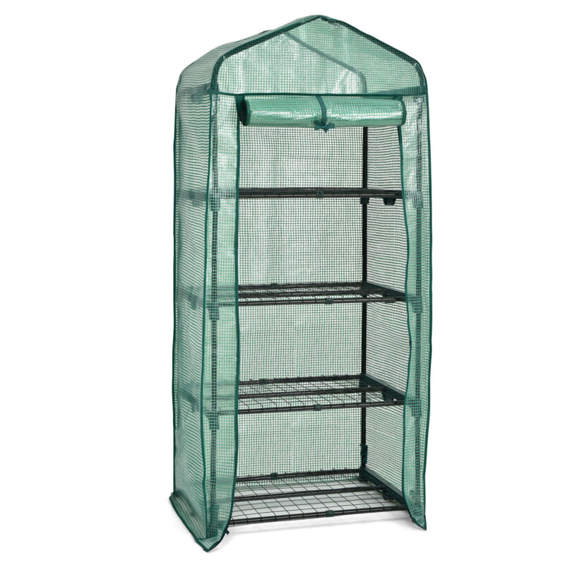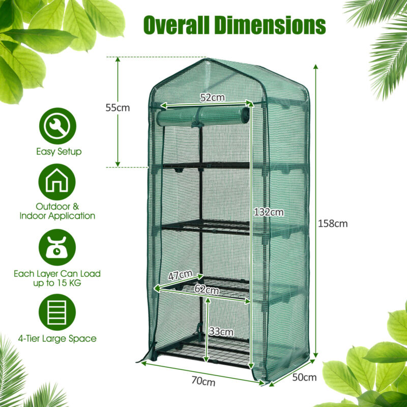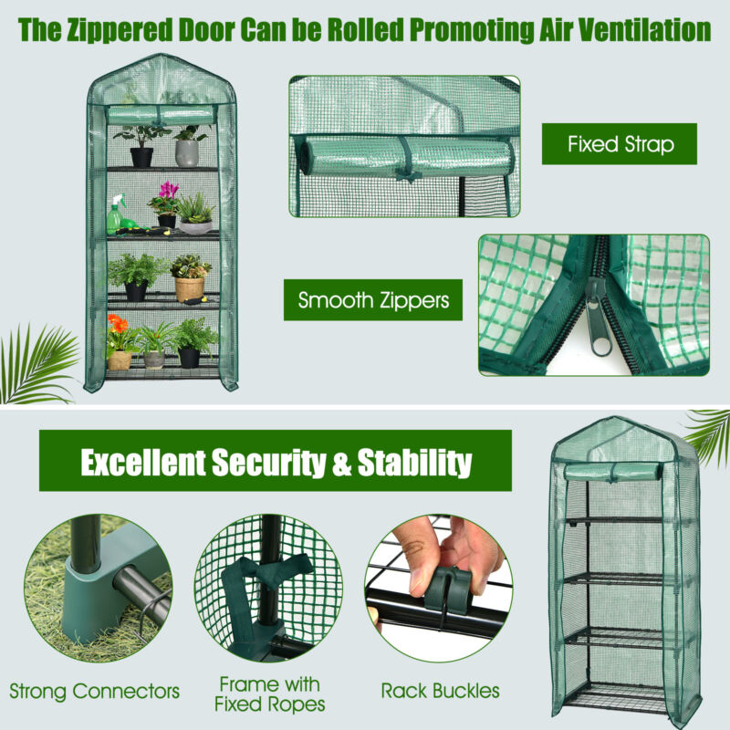 4 Tier Mini Greenhouse Outdoor Garden Plants Growhouse W/ Zippered Roll up Door