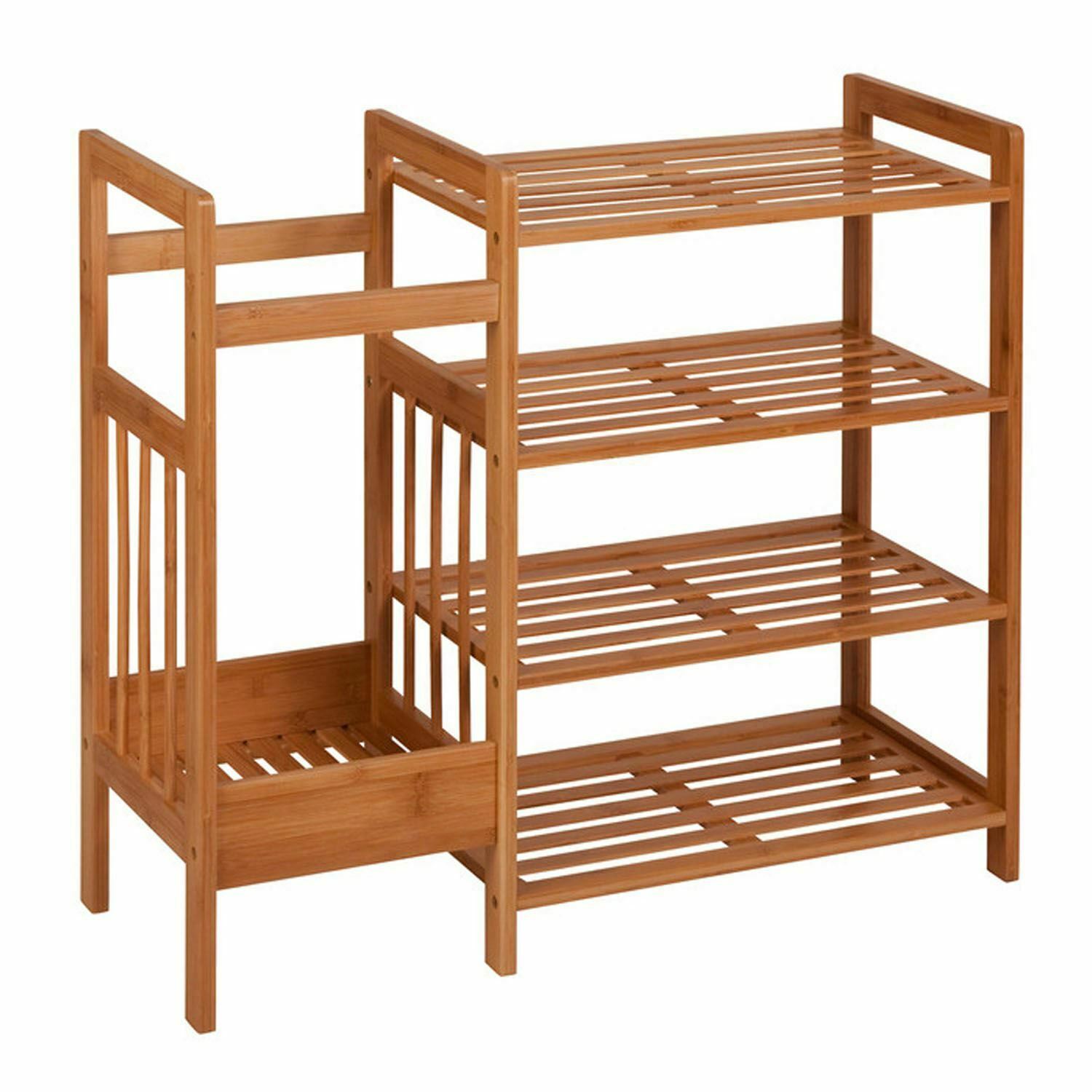4-Tier Natural Bamboo Wooden Shoe Rack Storage Organizer & Umbrella Holder
