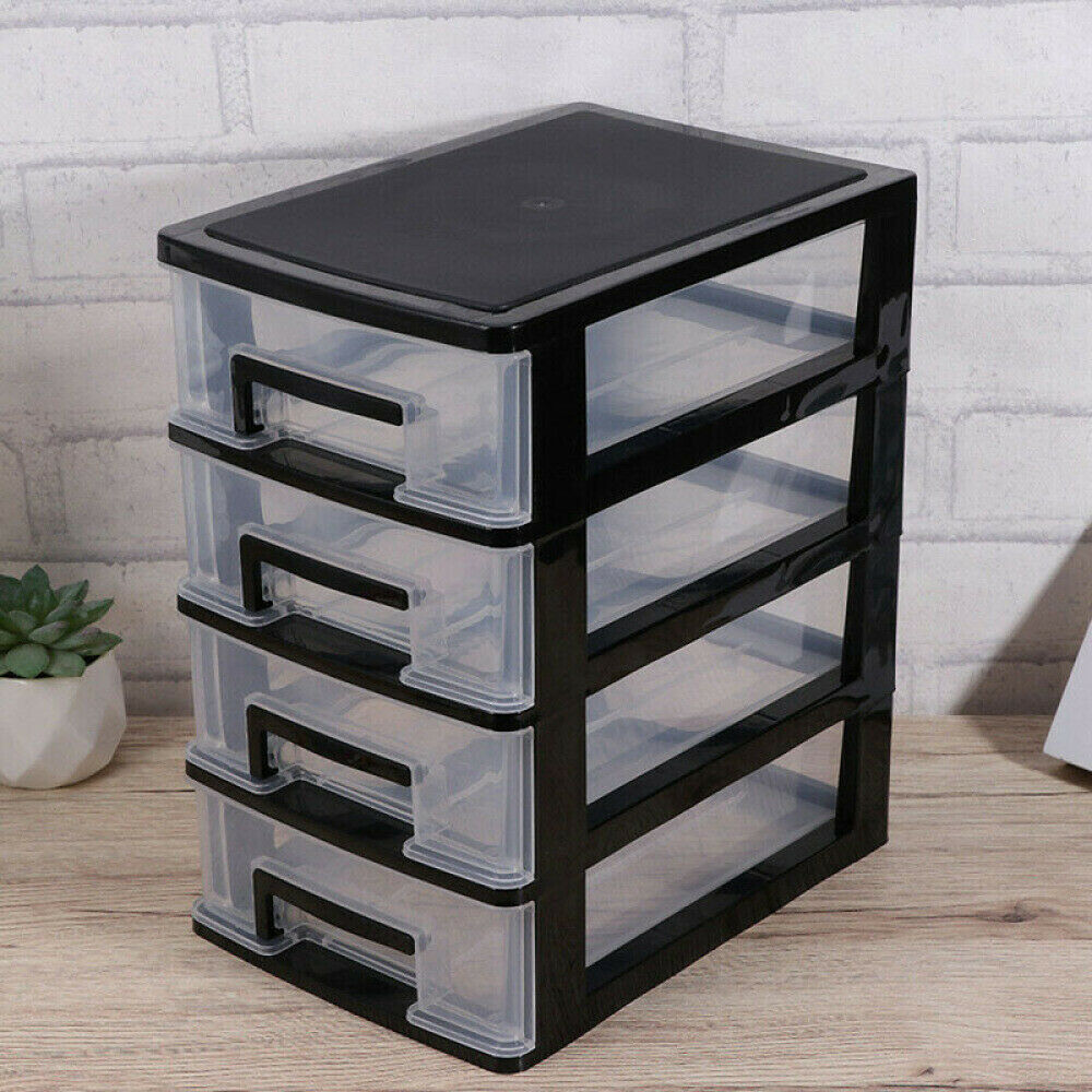 4 Tier Plastic Drawer Storage Box Home Office Desktop Organiser Unit Boxes Black