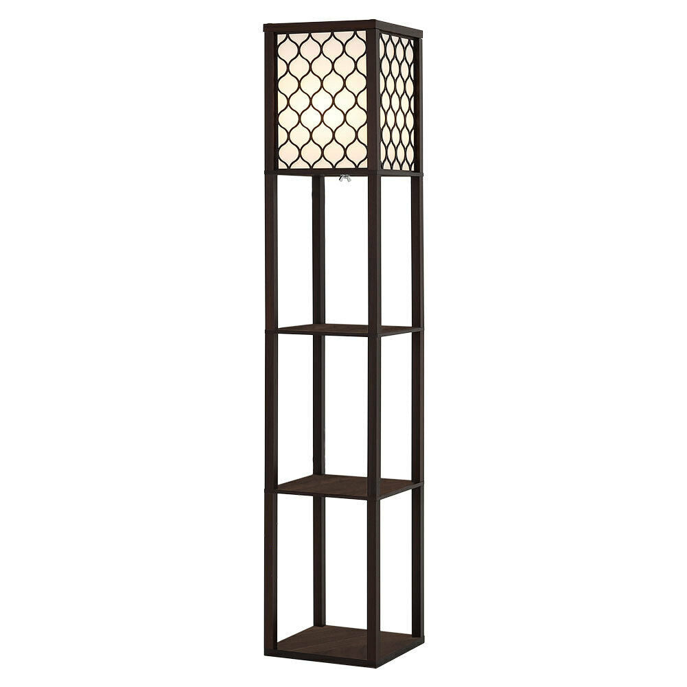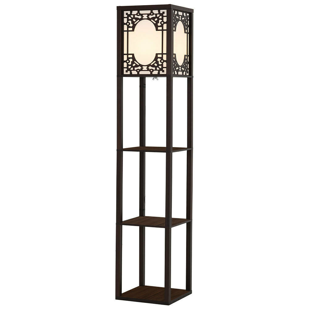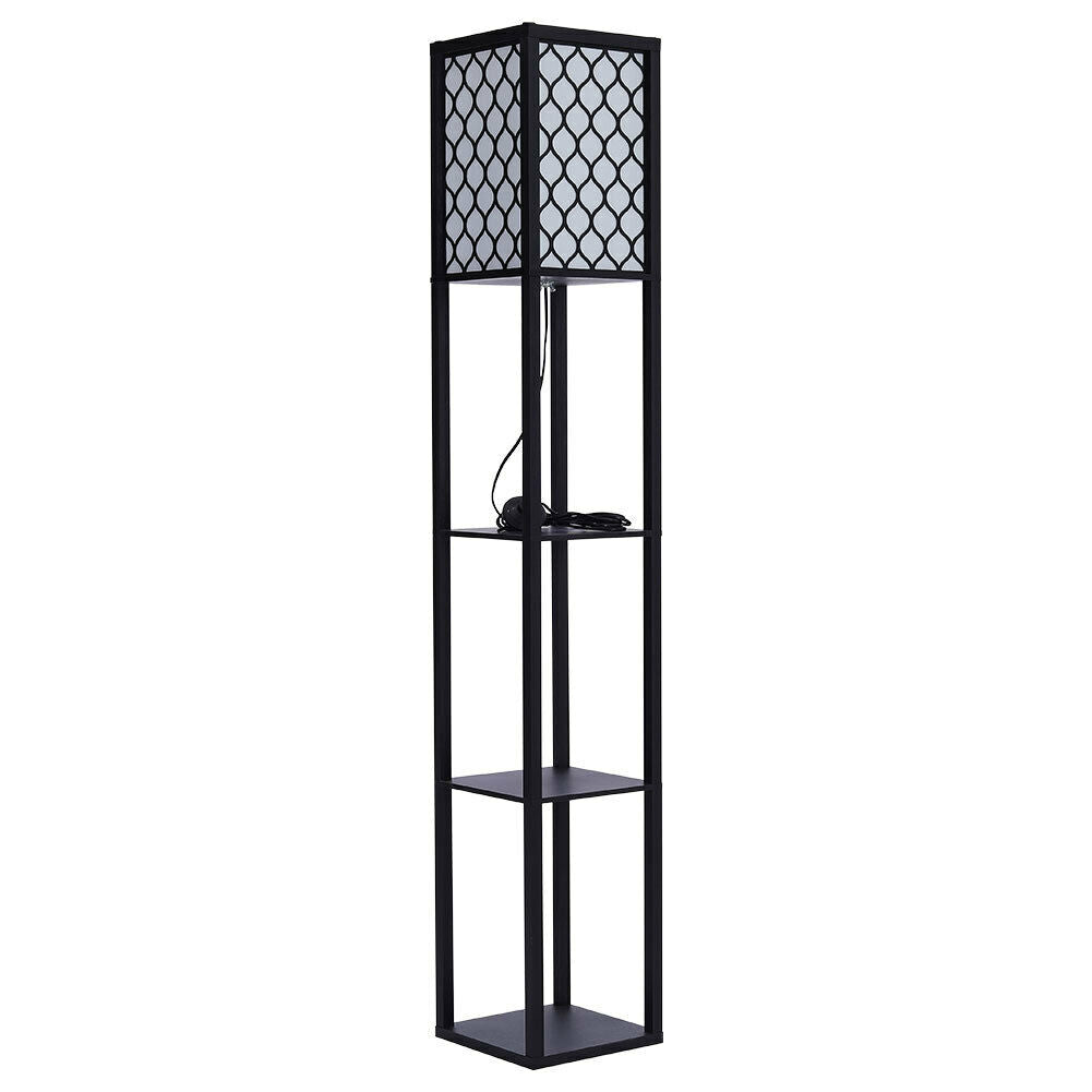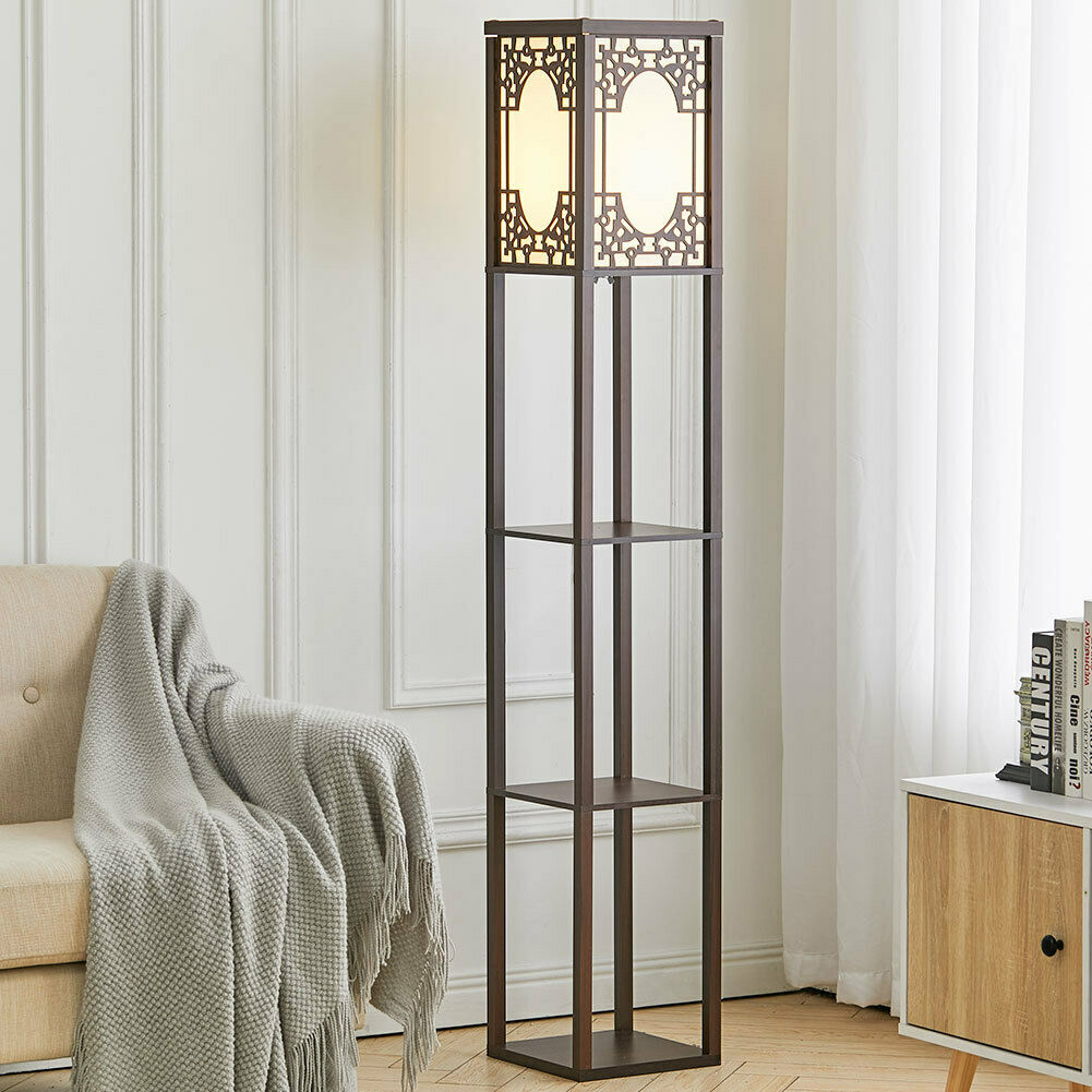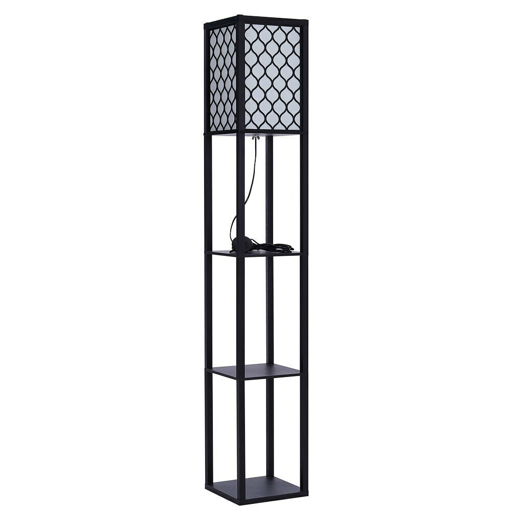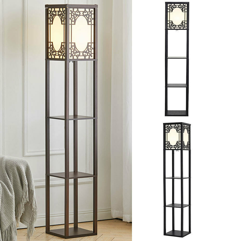 4 Tier Shelf Floor Lamp w/ Shade Standing Light Open Shelves Storage Living Room