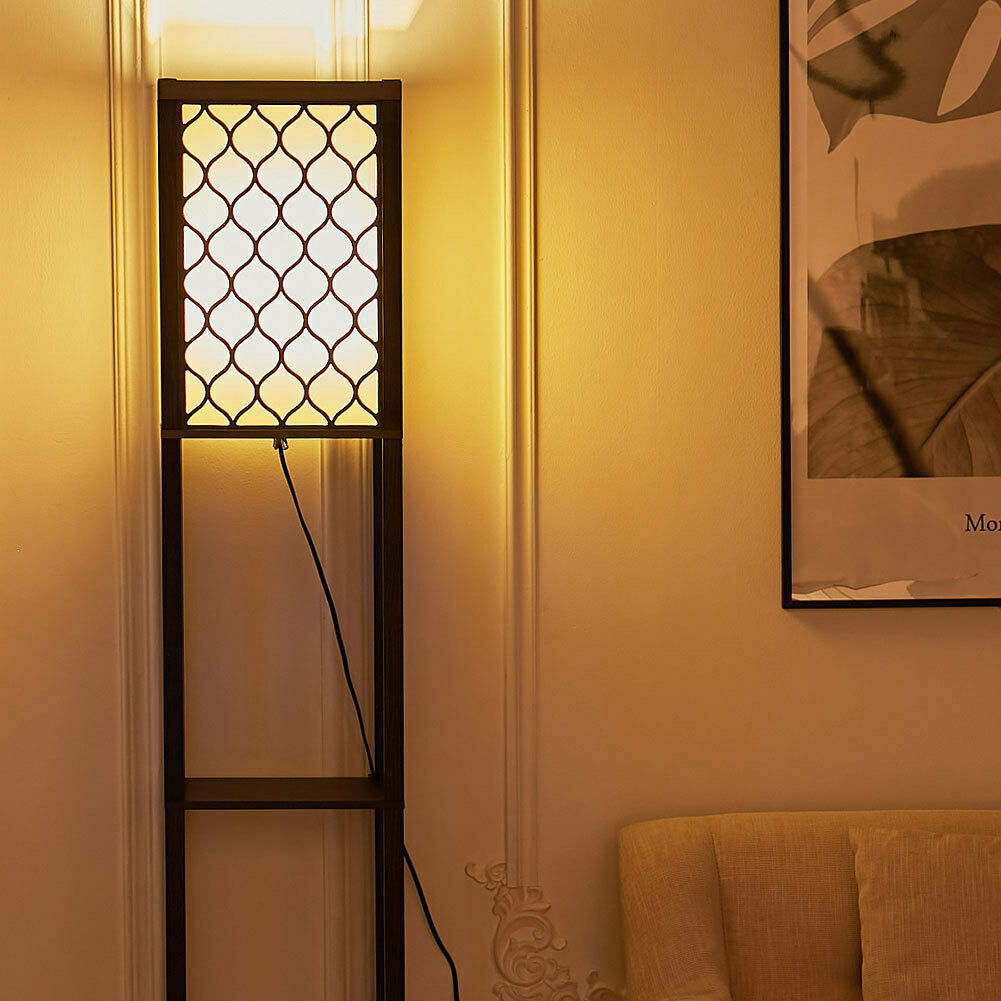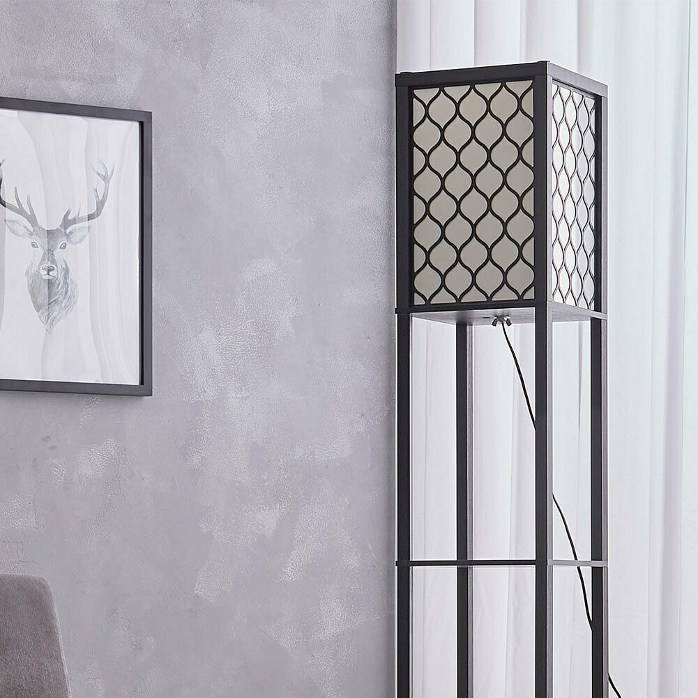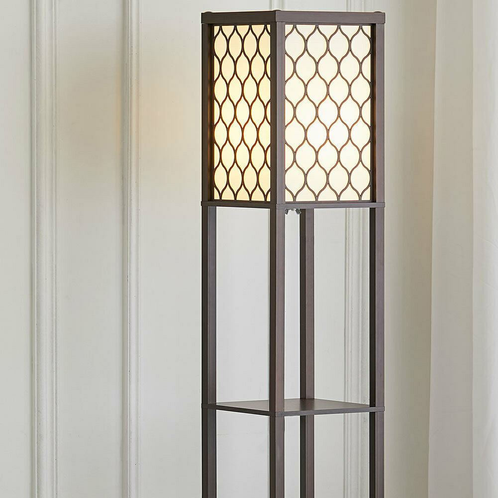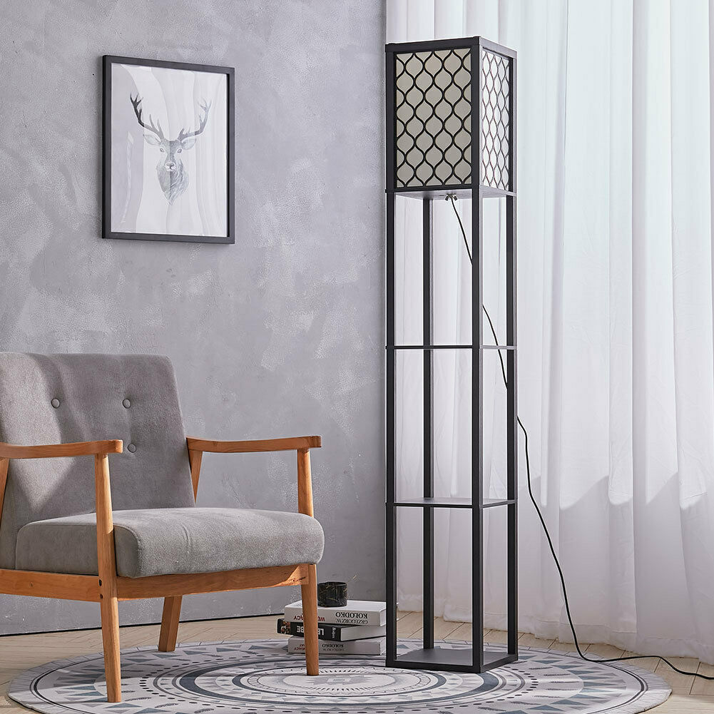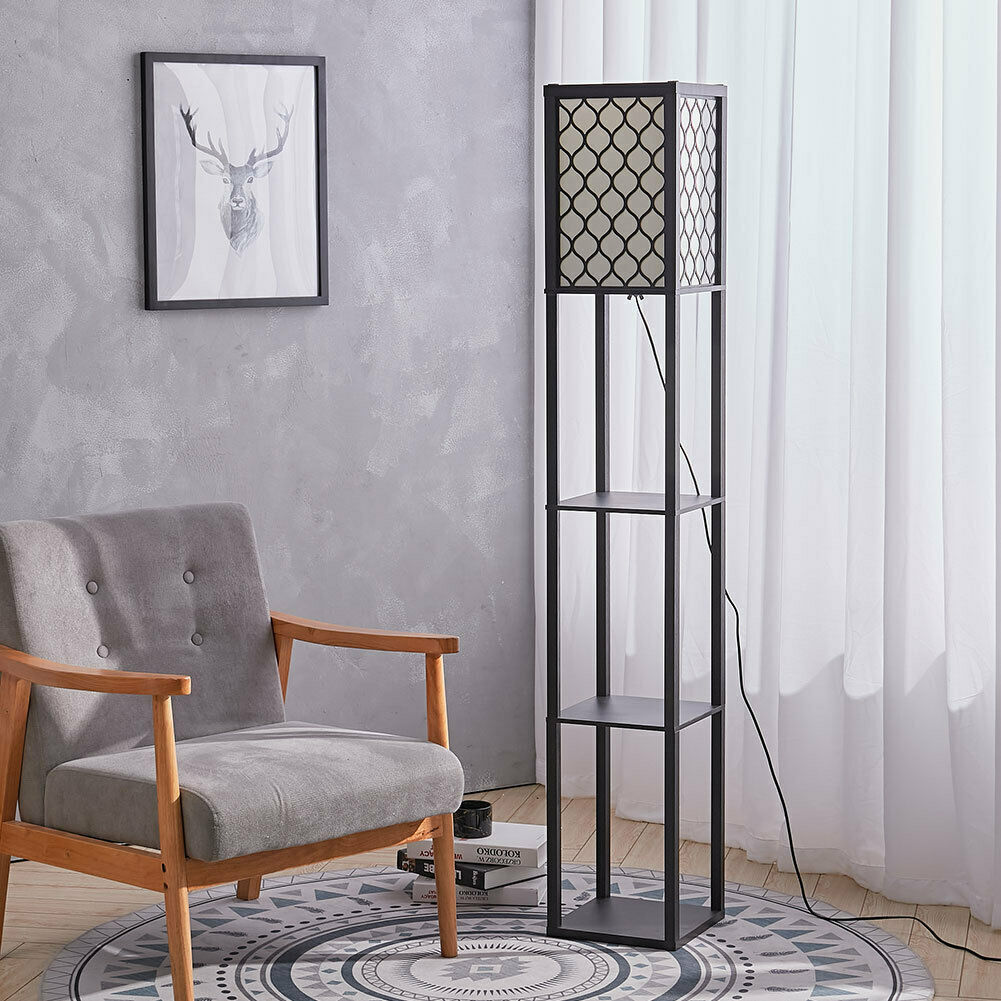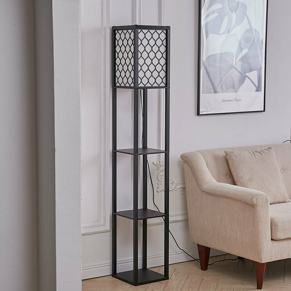 4 Tier Shelf Floor Lamp w/ Shade Standing Light Open Shelves Storage Living Room
