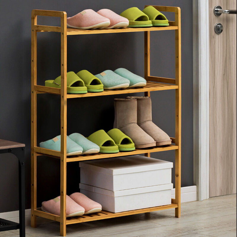 4 TIER Shelf Rack Bamboo Bookshelf Stand Storage Shoe Organizer Free Standing