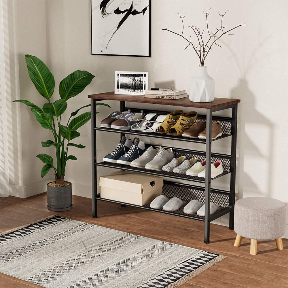 4 Tier Shoe Storage Bench Shoe Rack Cabinet Organizer Shelves Stand Home Hallway