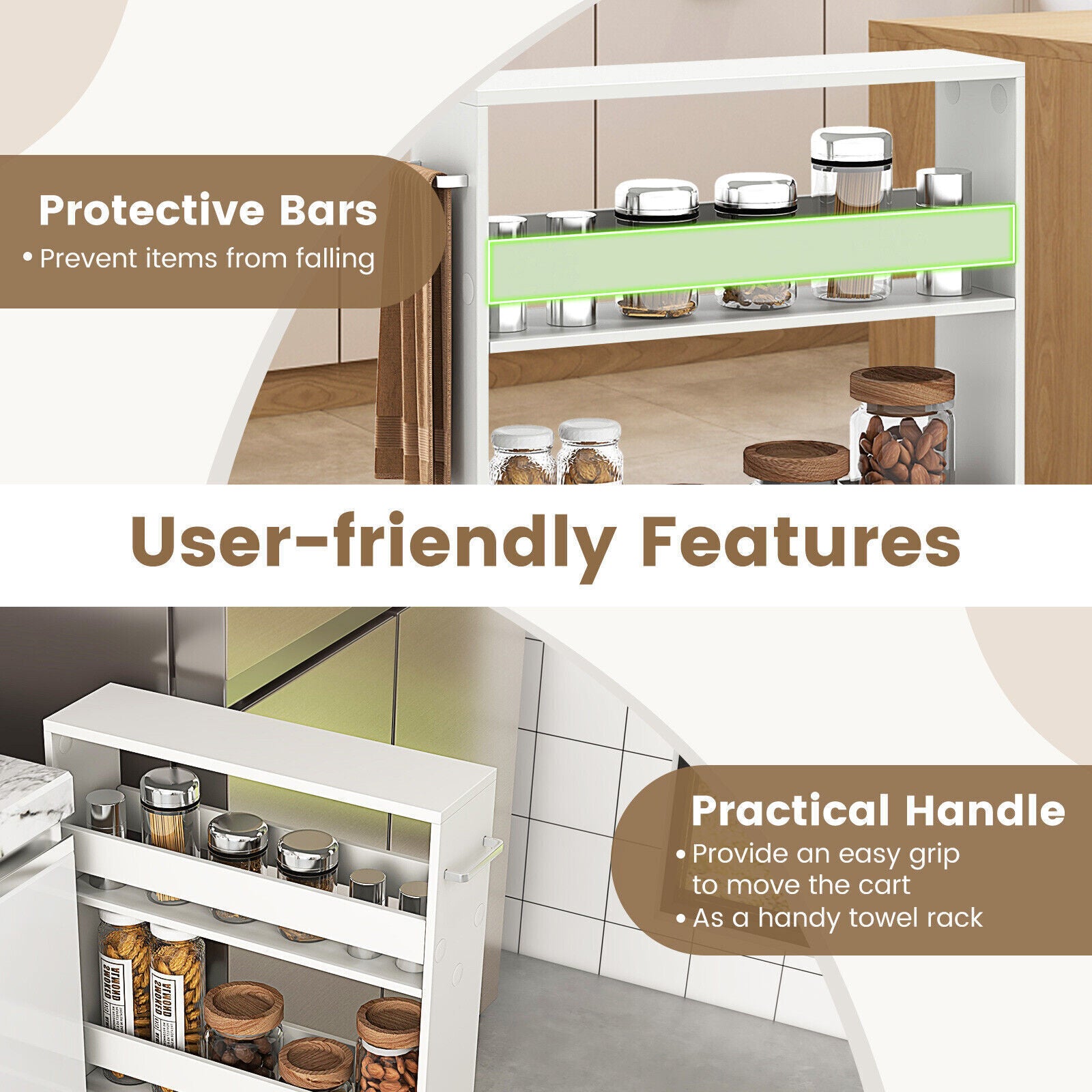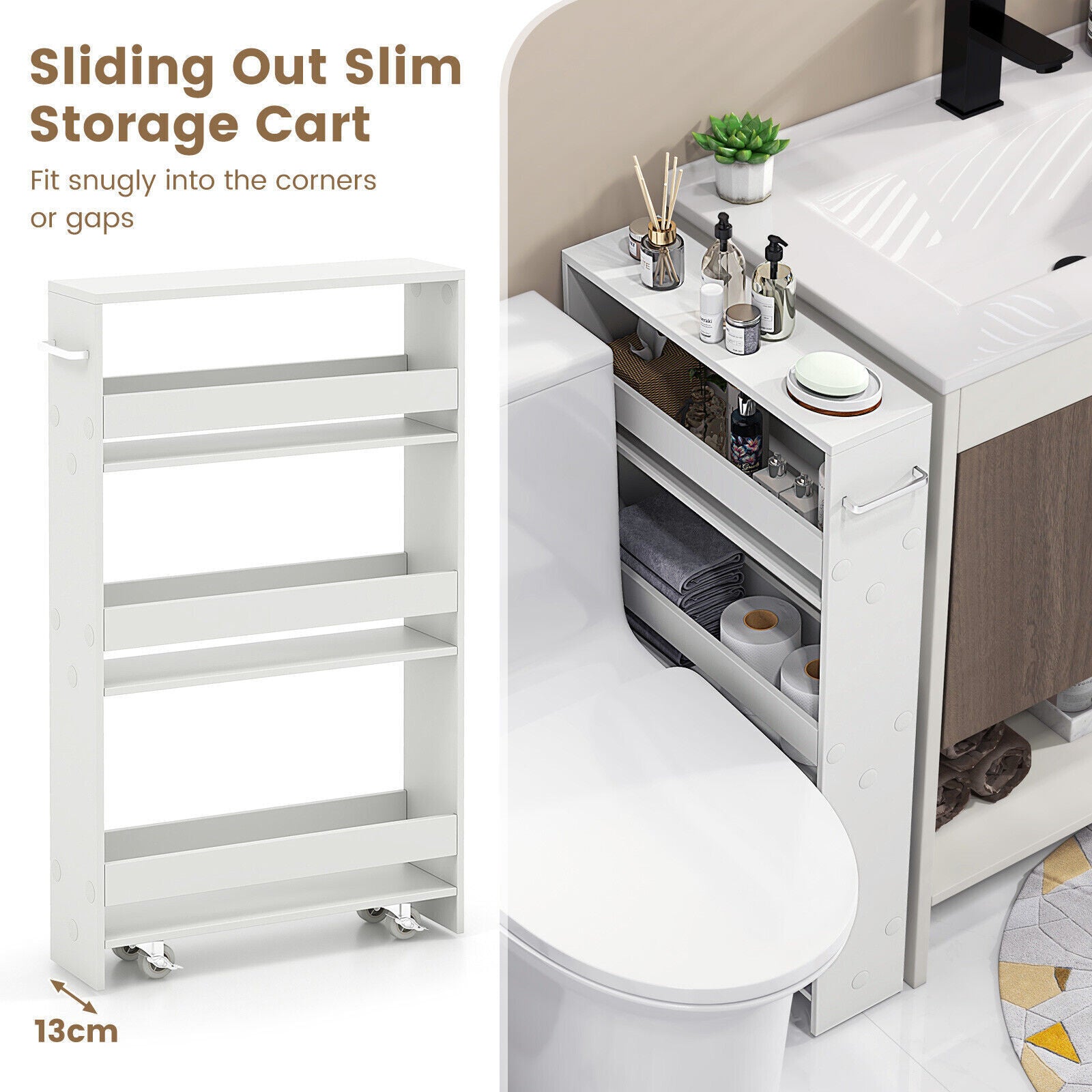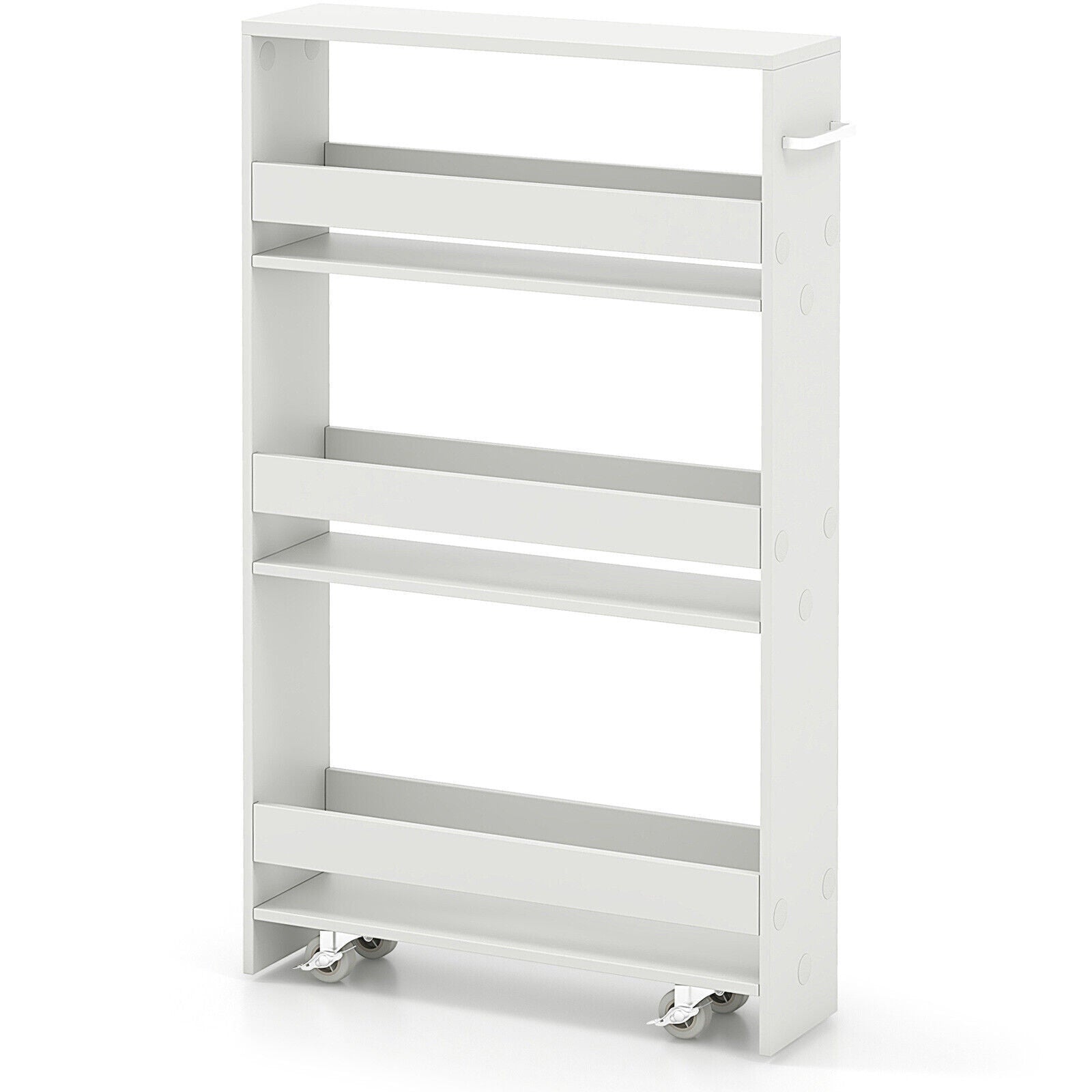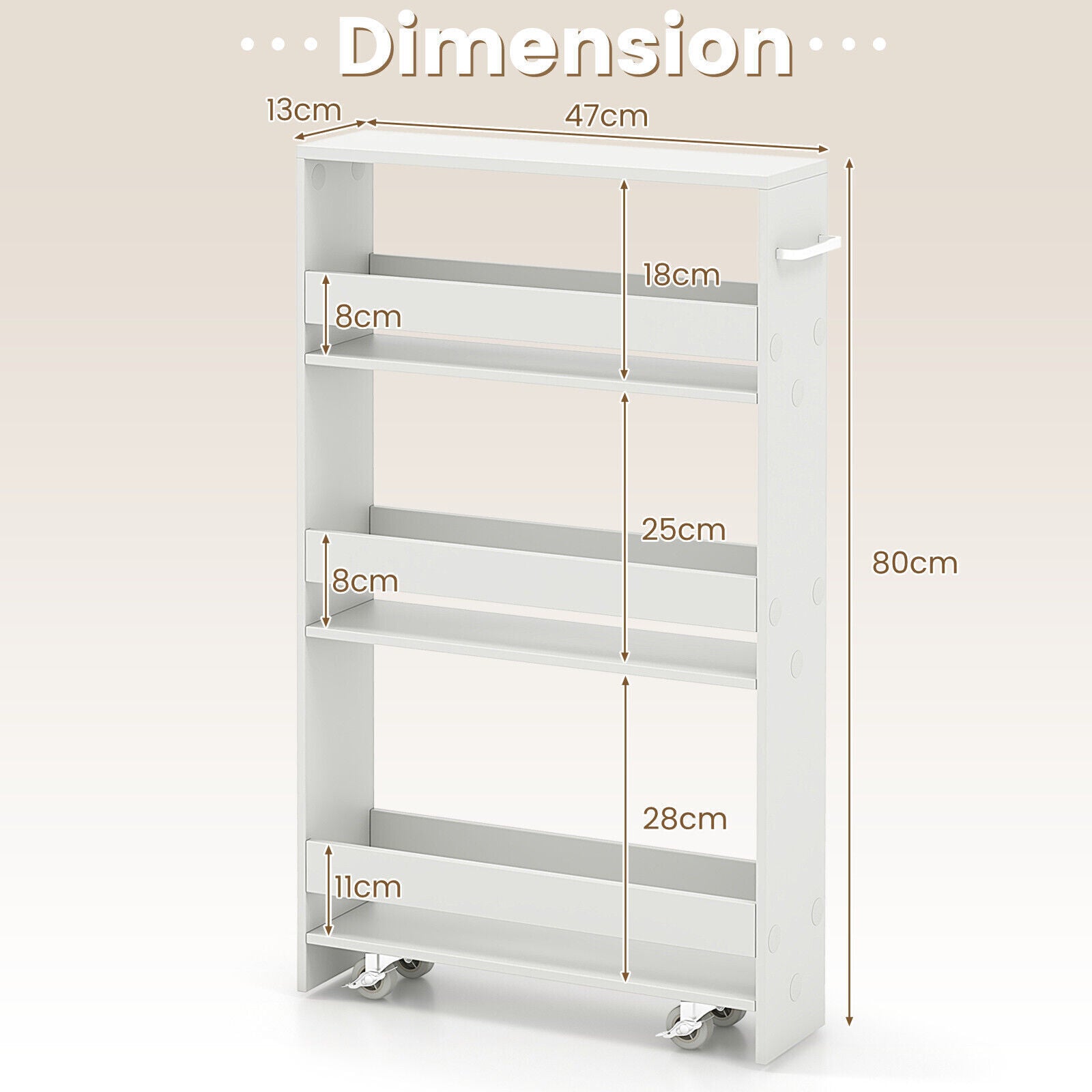 4-Tier Slim Utility Storage Cart Kitchen Trolley Narrow Mobile Serving Cart