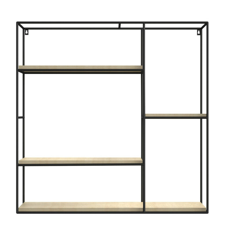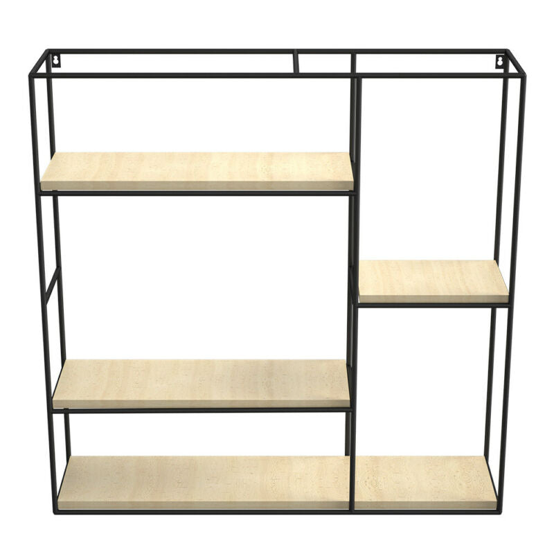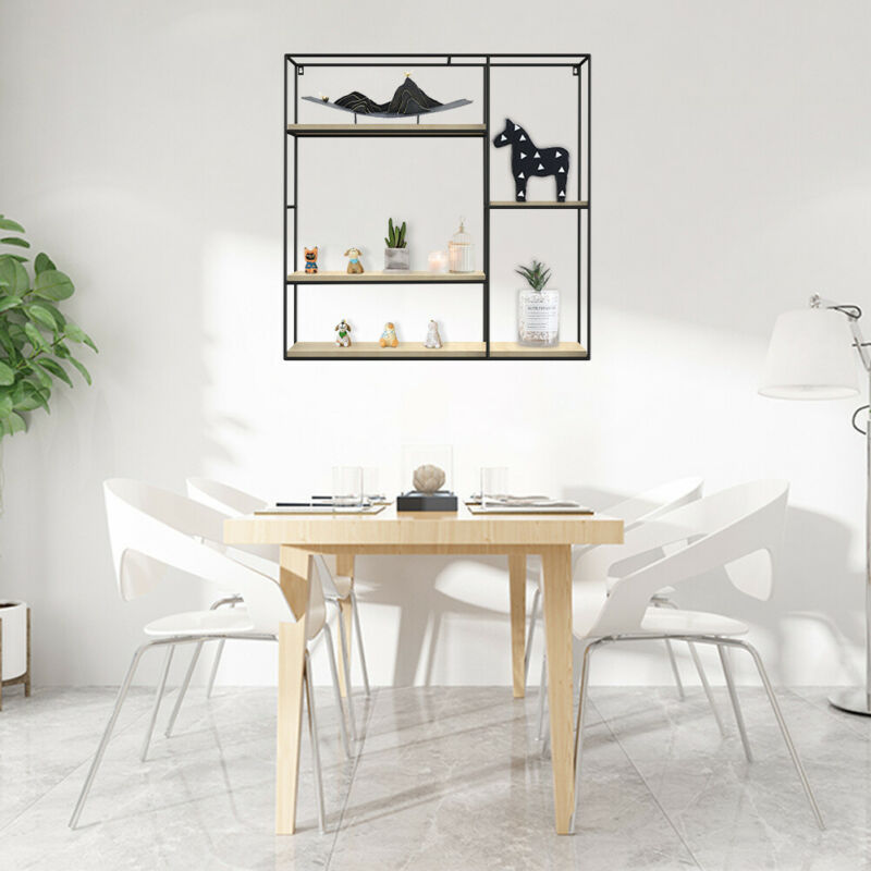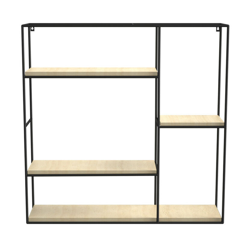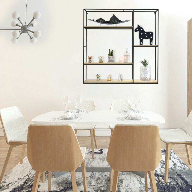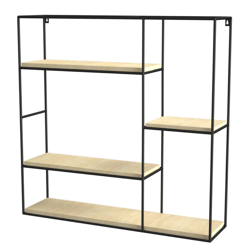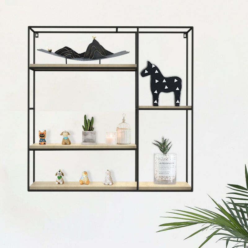 4 Tier Square Wall Storage Unit Retro Wooden Industrial Style Metal Shelf Rack