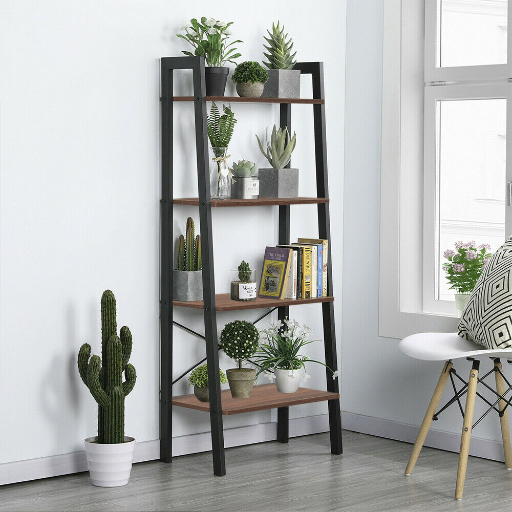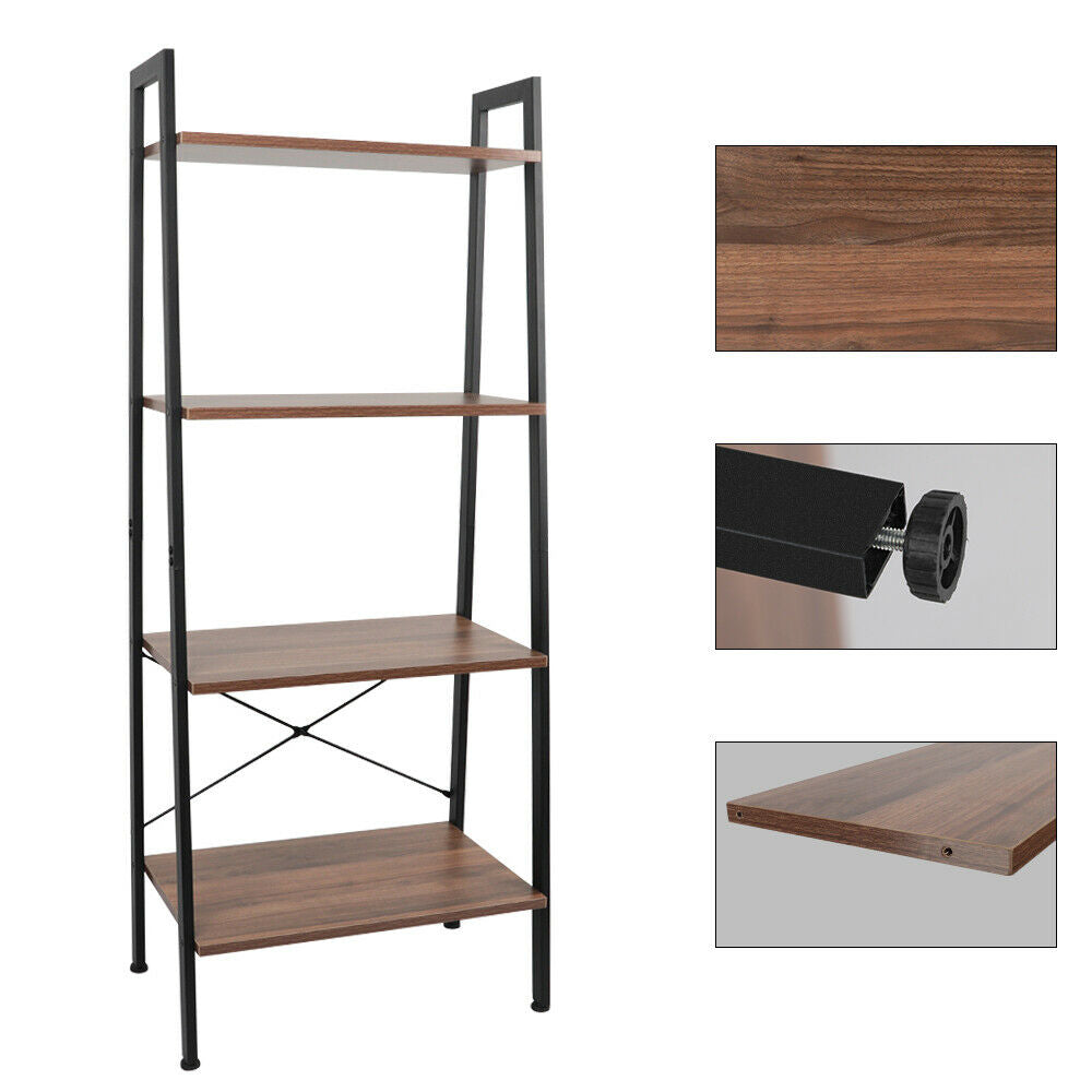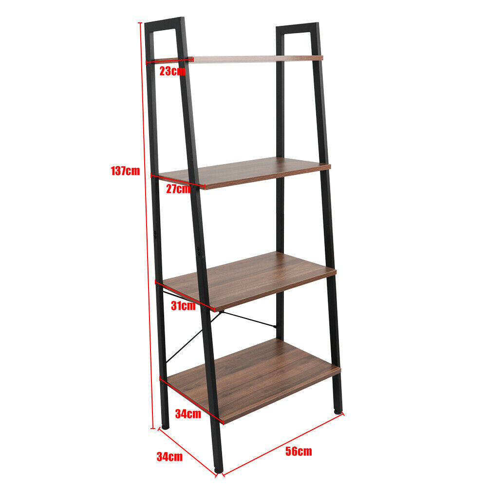 4-Tier Storage Shelves Ladder Bookshelf Industrial Bookcase Unit Rustic Brown