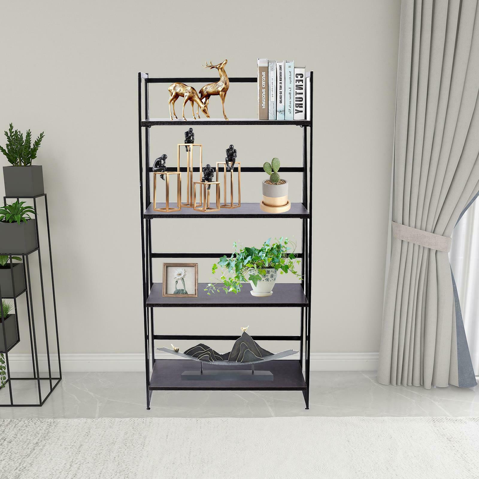 4-Tier Storage Shelves Ladder Bookshelf Industrial Bookcase with Metal Frame
