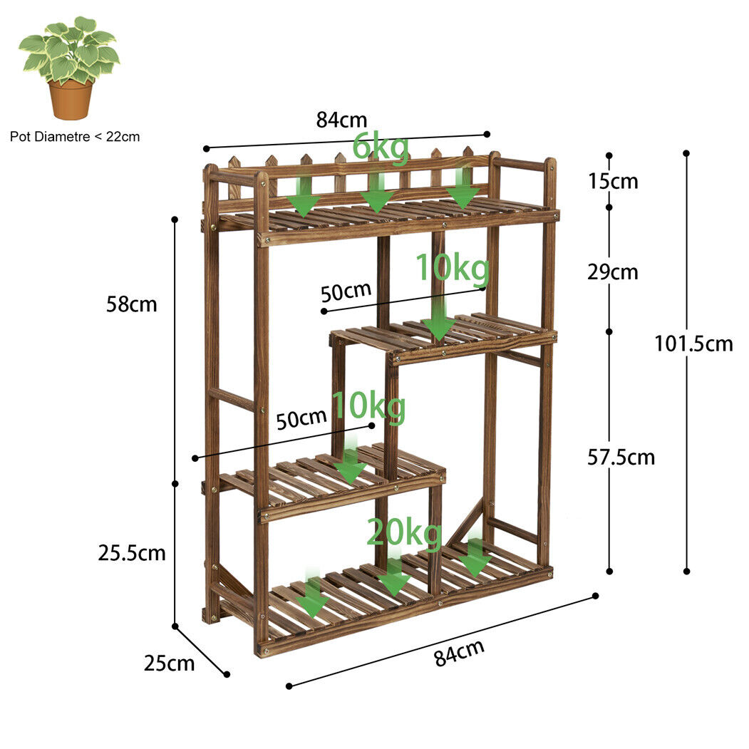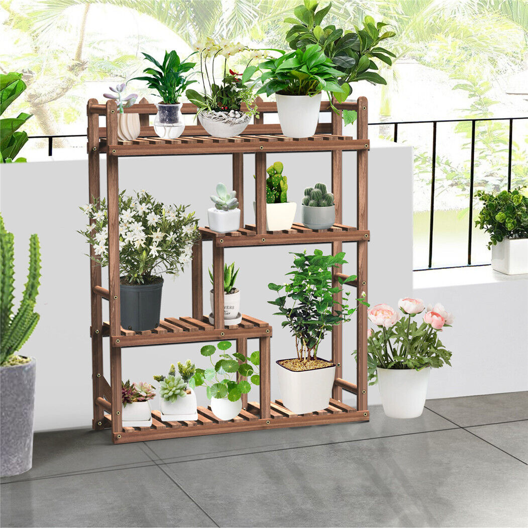 4 Tier Sturdy Wooden Plant Stand Indoor Outdoor Creative Plant Shelf Holder Rack