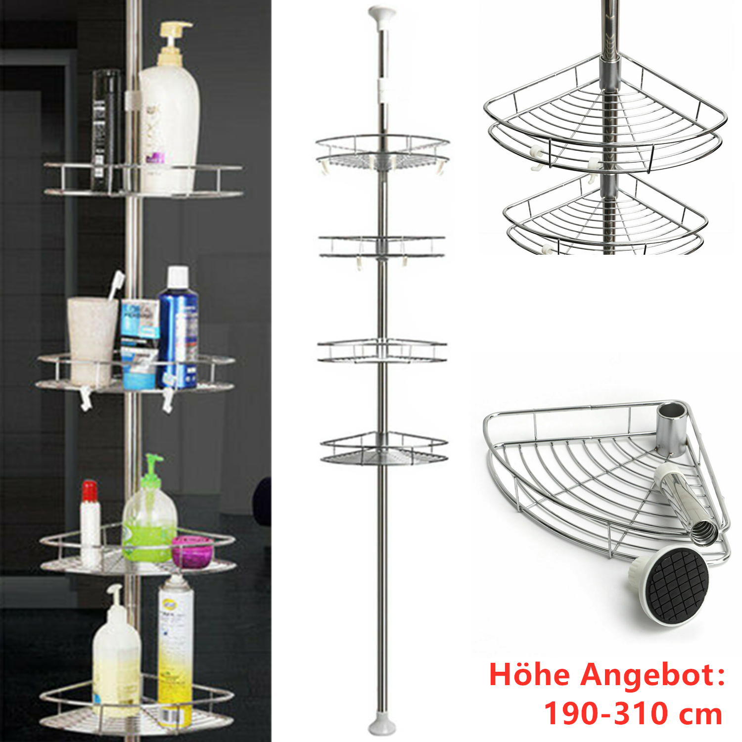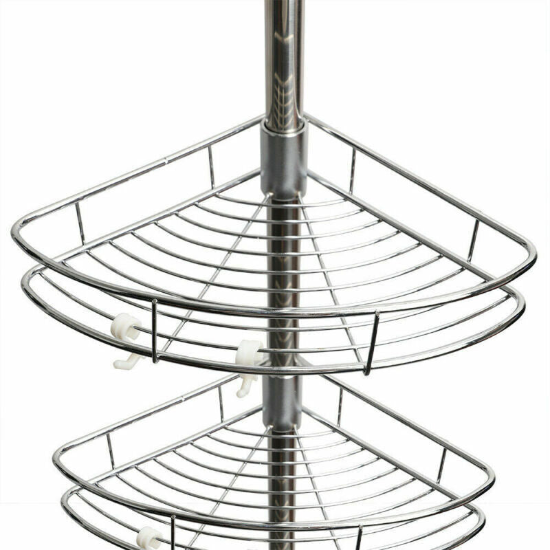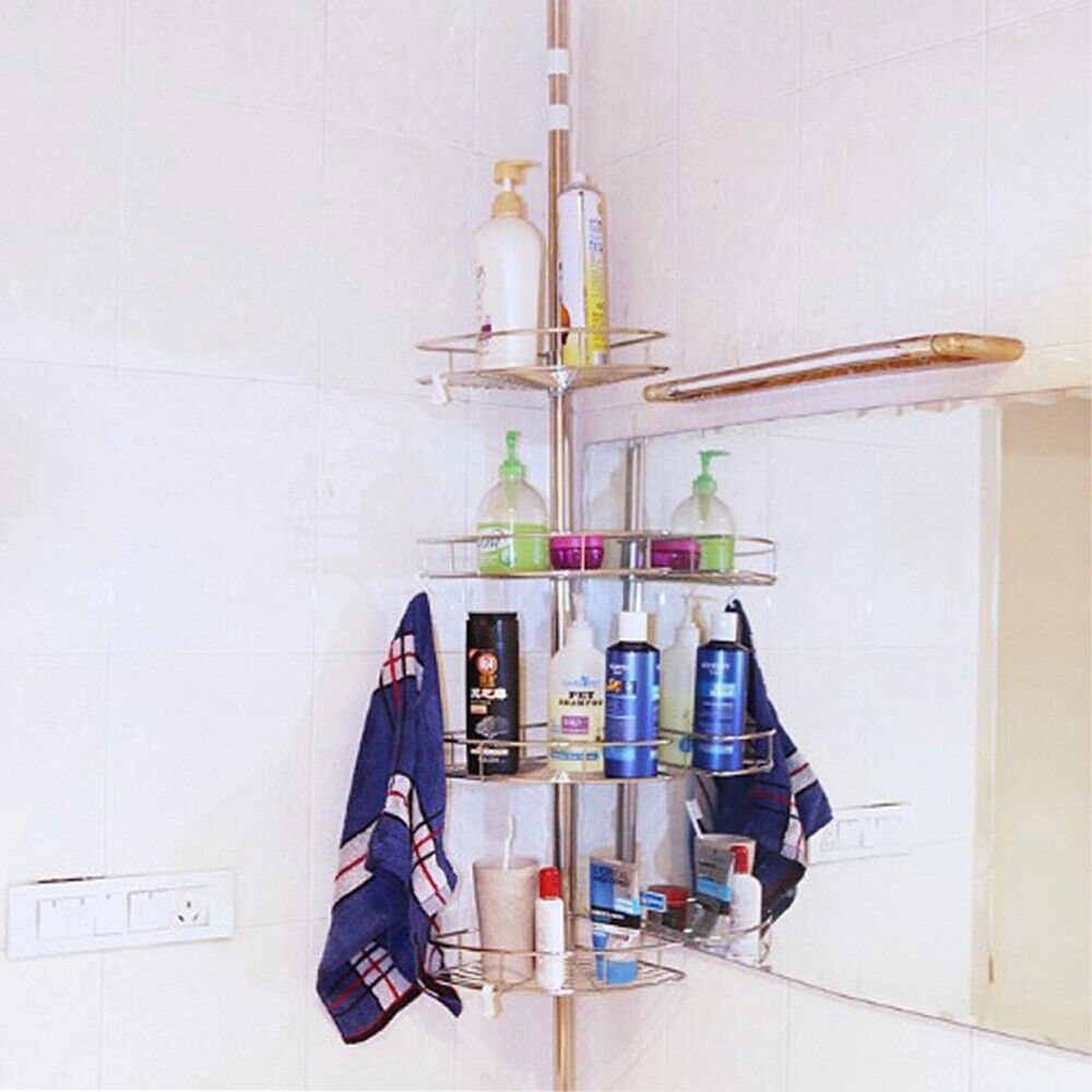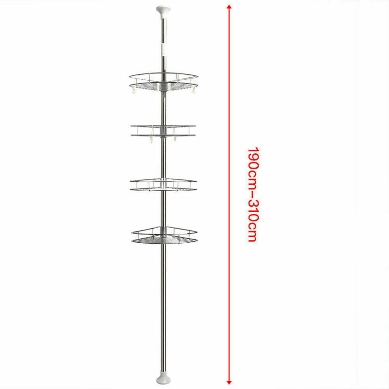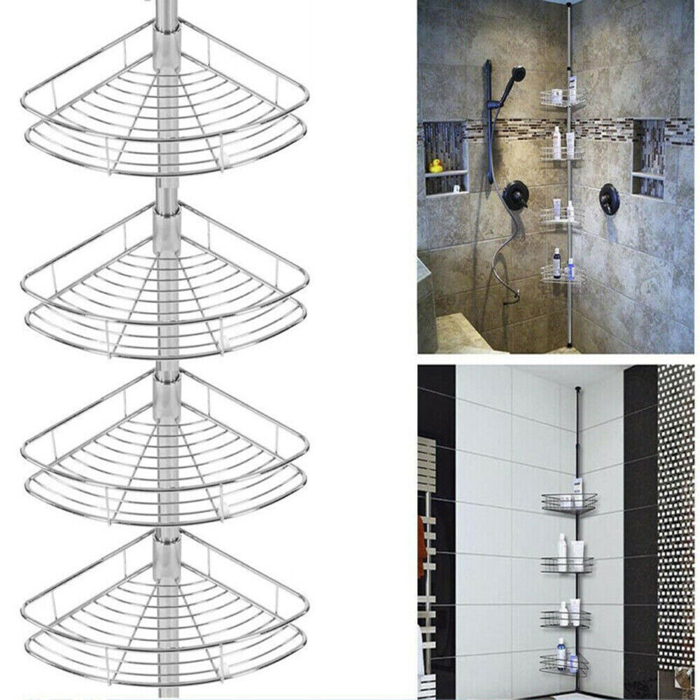 4 Tier Telescopic Bathroom Corner Shelf Silver Rack Shower Caddy Organizer UK